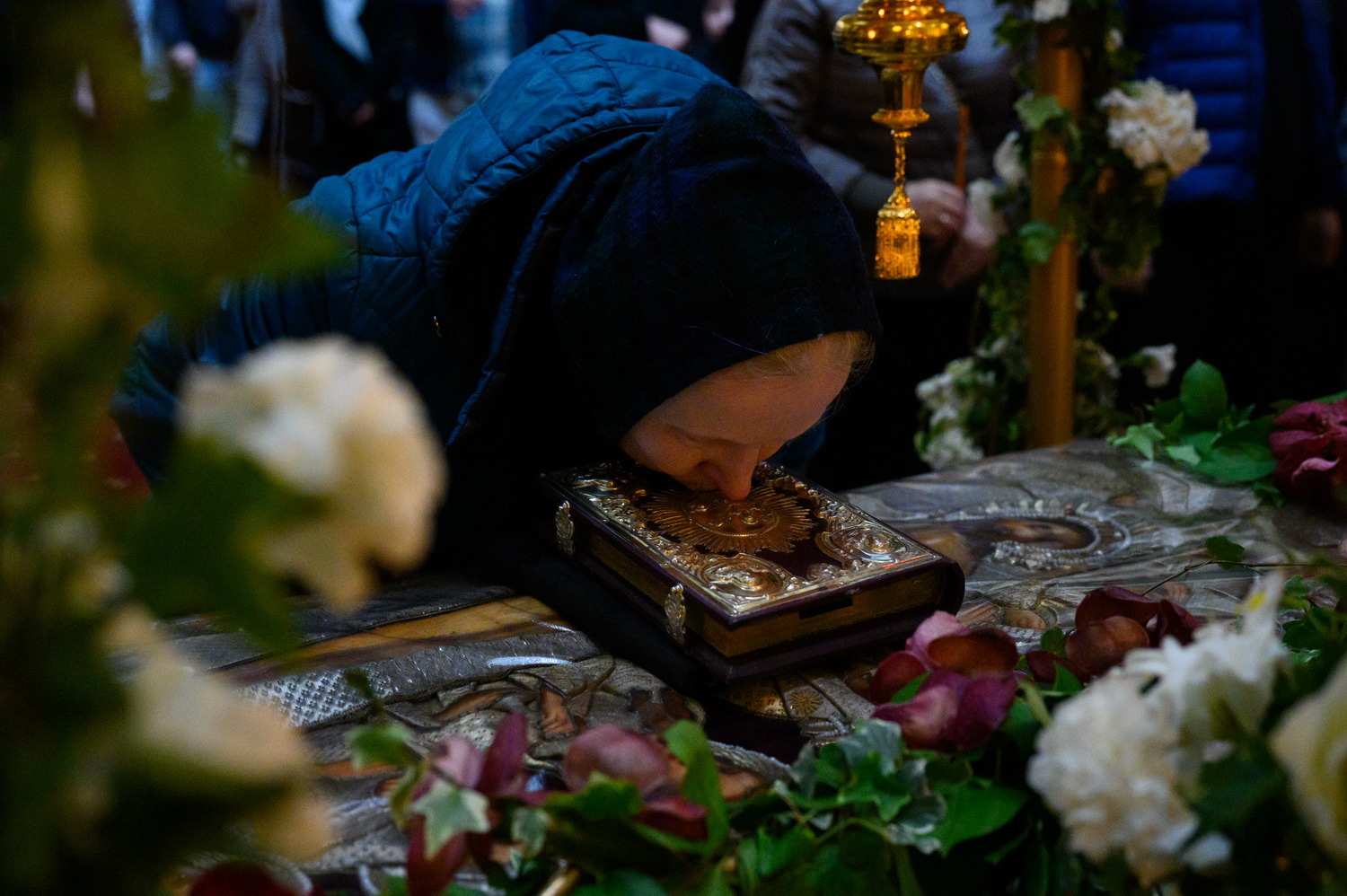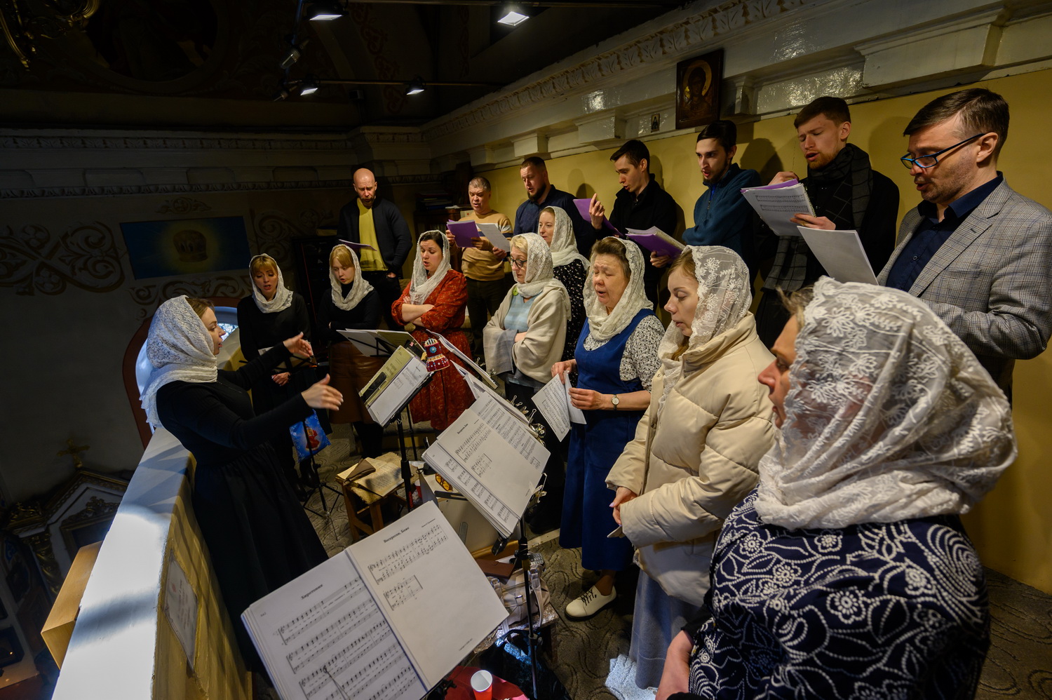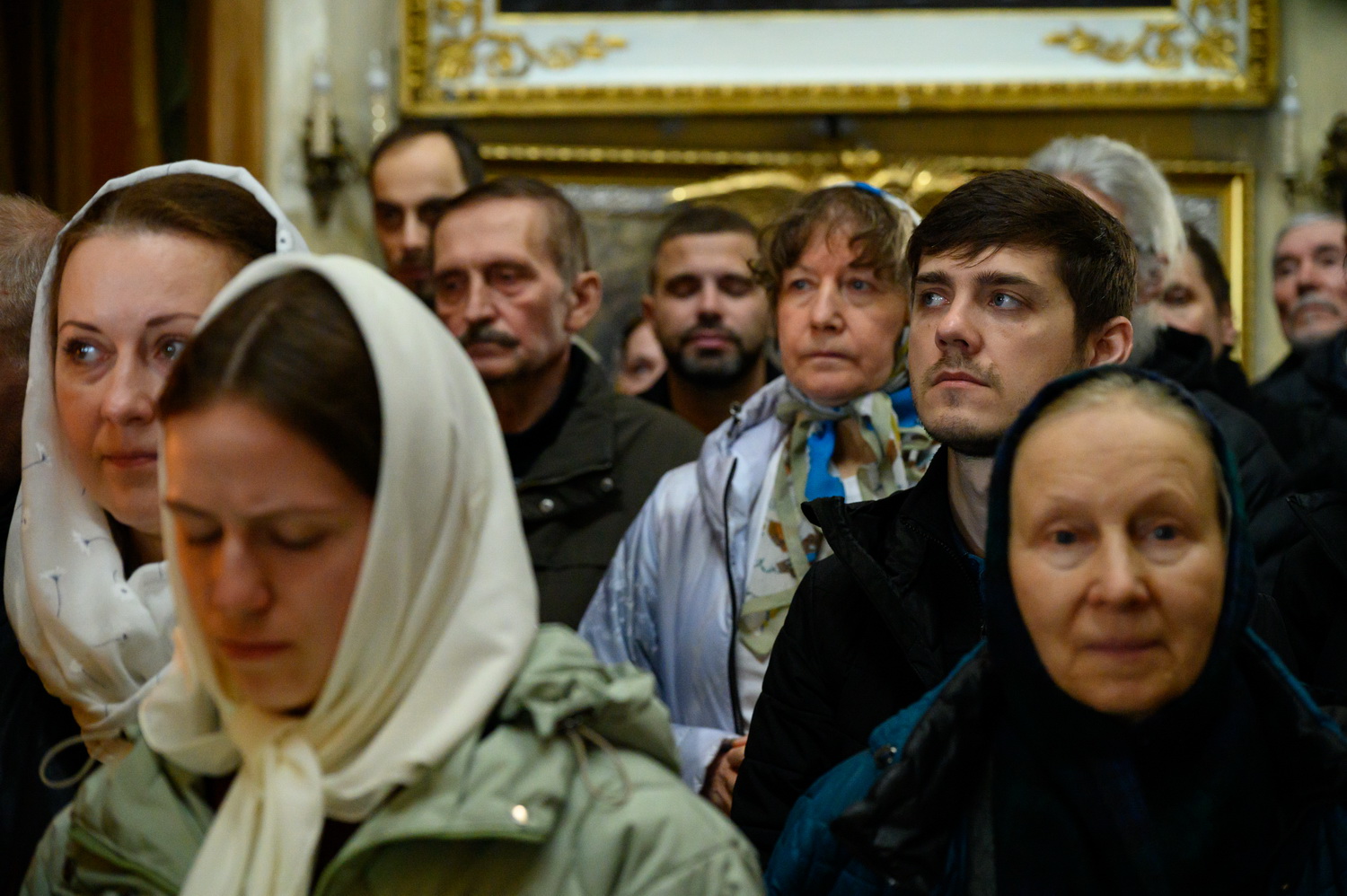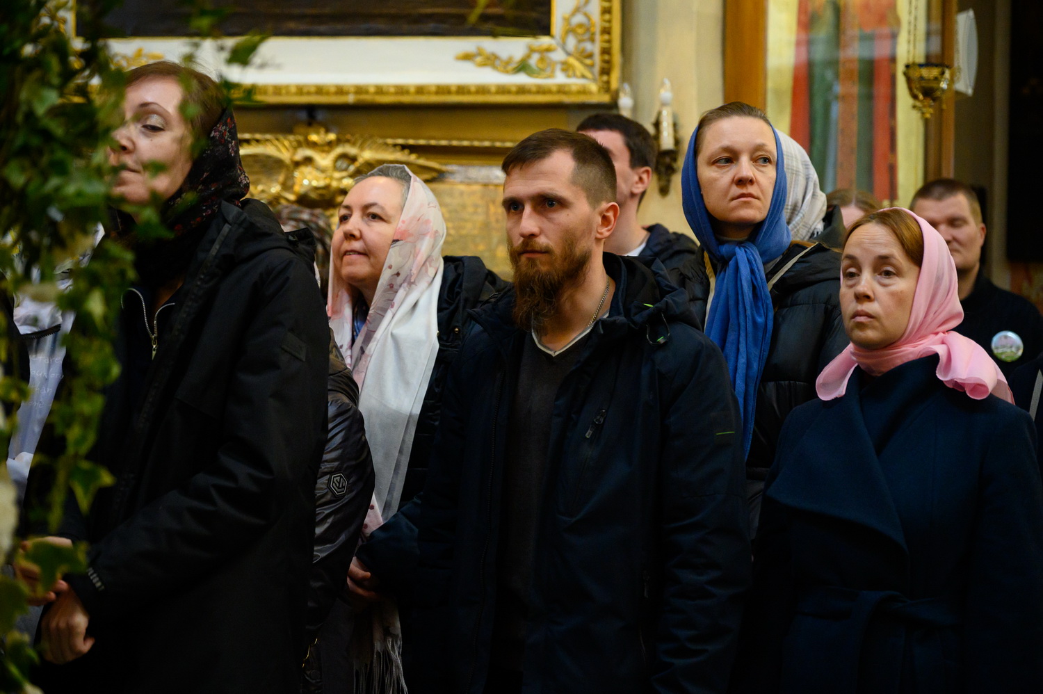 Песнопения Литургии исполнили братский хор монастыря под руководительством монаха Антония (Лисова) и Архиерейский хор Псково-Печерского монастыря под управлением Марии Быковой. За богослужением молились насельники монастыря, студенты Псково-Печерской семинарии, прихожане обители и паломники.