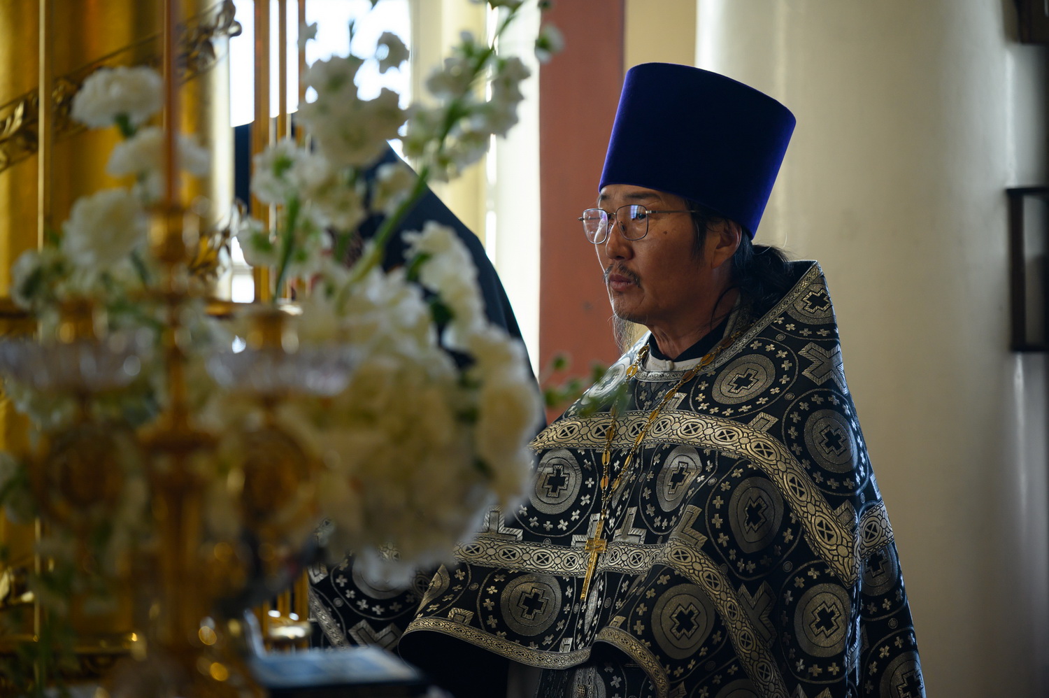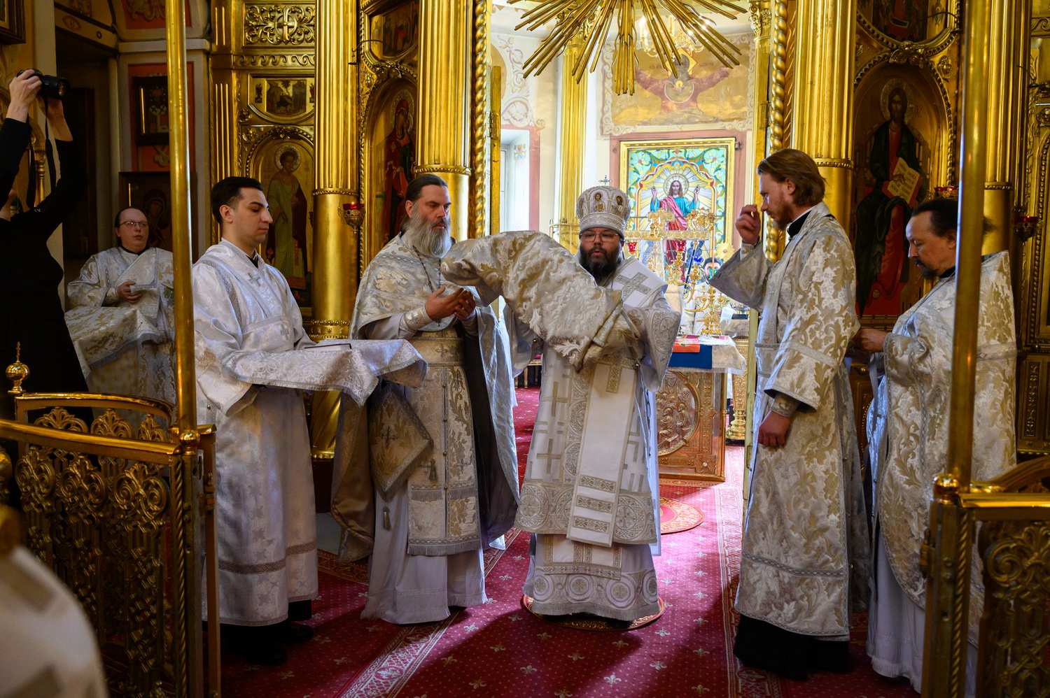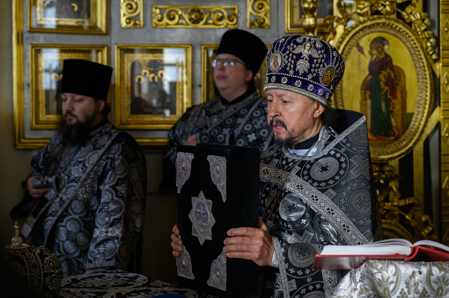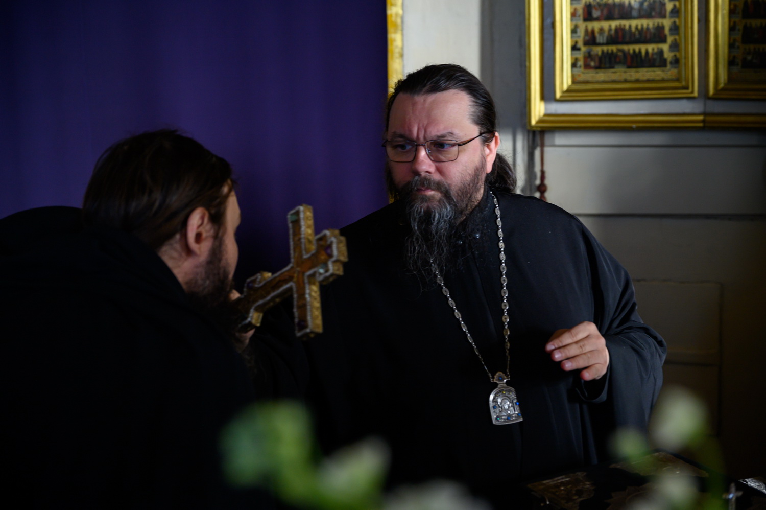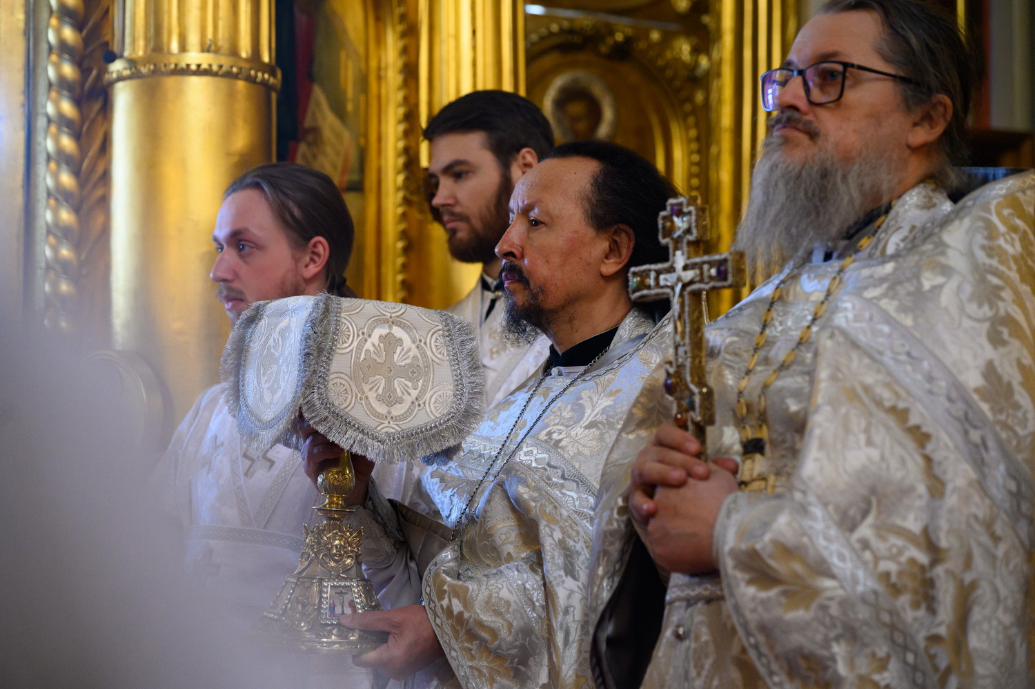 Его Высокопреосвященству сослужили: архимандрит Филарет (Кольцов) с братией обители в священном сане и клирик храма в честь иконы Божией Матери «Спорительница хлебов» Патриаршего подворья в станице Приазовской Краснодарского края иерей Роман Хан.
