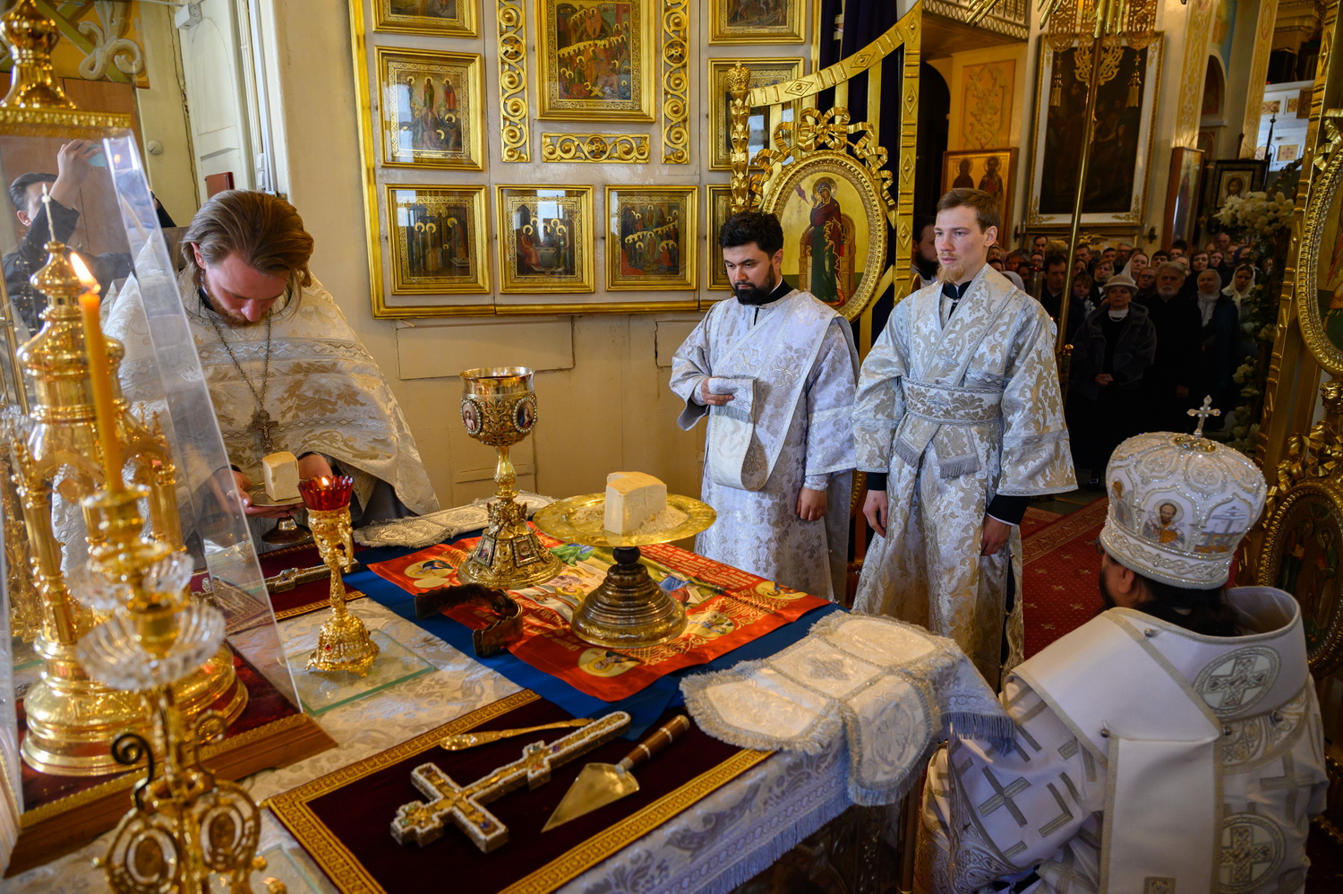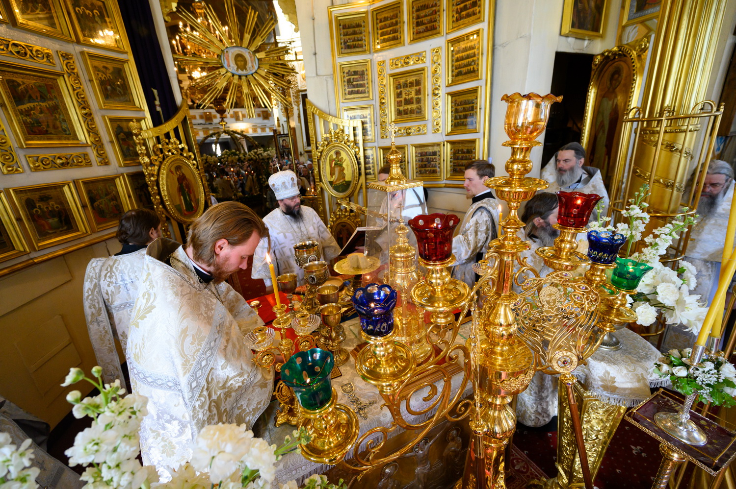 В Великую Субботу митрополит Матфей совершил Божественную Литургию в Свято-Успенском Псково-Печерском монастыре