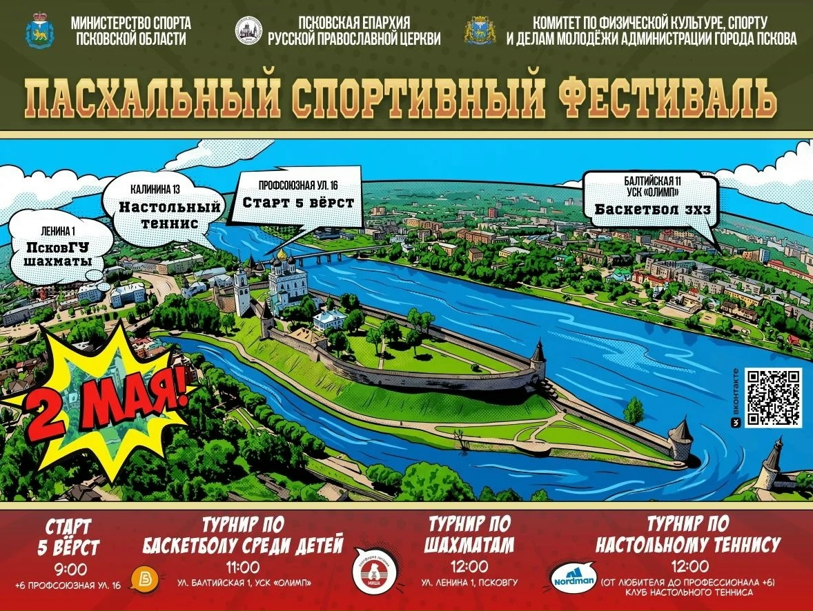 2-3 мая 2026 года в Пскове пройдет Пасхальный спортивный фестиваль.