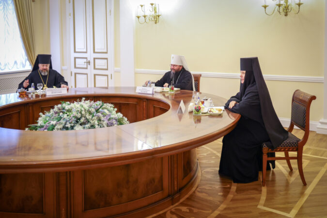 23 апреля 2026 года в историческом здании Смольного института в Санкт-Петербурге прошла встреча губернатора Санкт-Петербурга Александра Беглова, митрополита Псковского и Порховского Матфея, наместника Свято-Троицкой Александро-Невской лавры епископа Кронштадтского Вениамина, настоятельницы Московского Богородице-Смоленского Новодевичьего ставропигиального женского монастыря игумении Маргариты (Феоктистовой).
