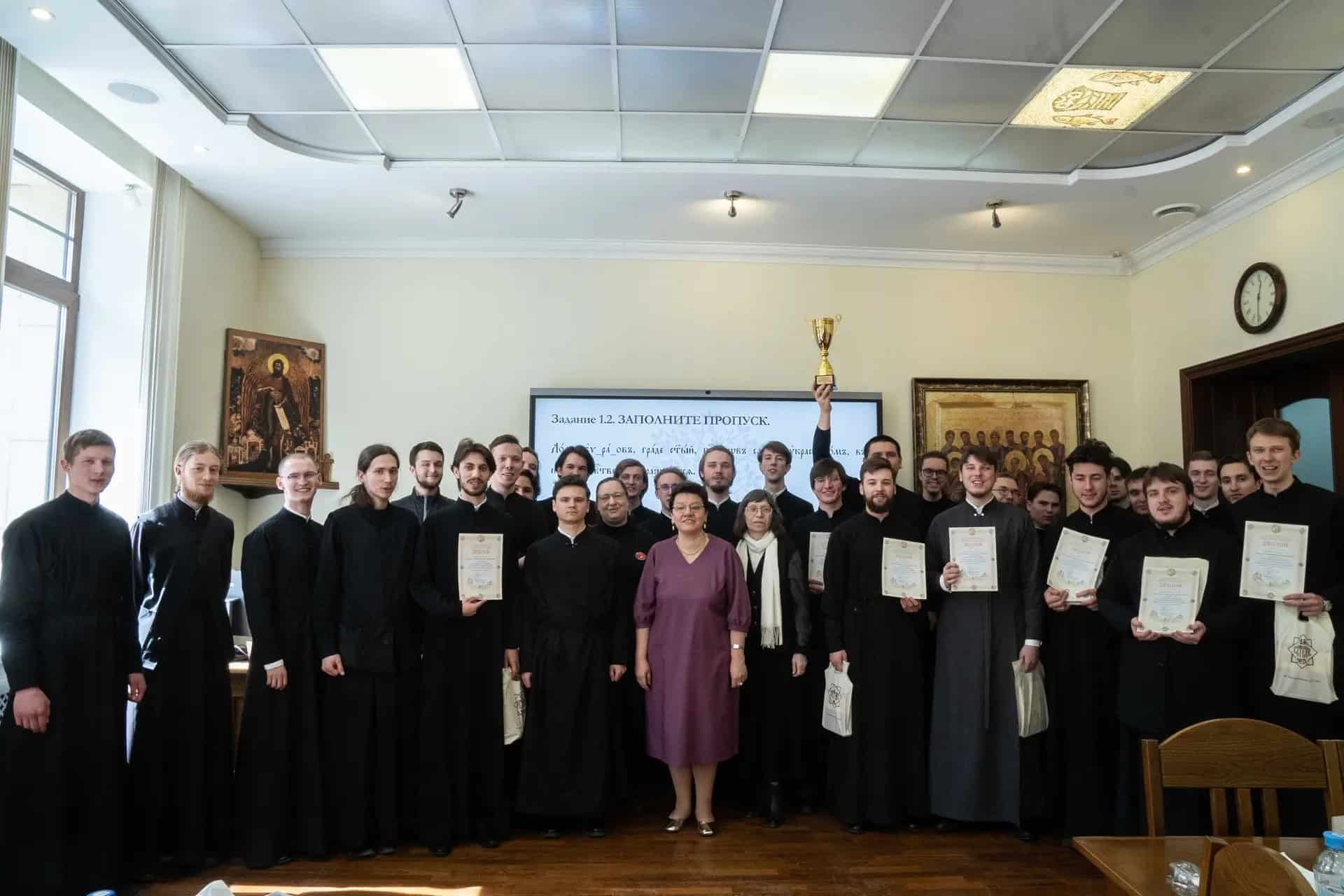 22 апреля 2026 года студенты Псково-Печерской духовной семинарии приняли участие во II Молодежной викторине по церковнославянскому языку «Церковнославянские состязания», которые прошли в Сретенской духовной академии в Москве.