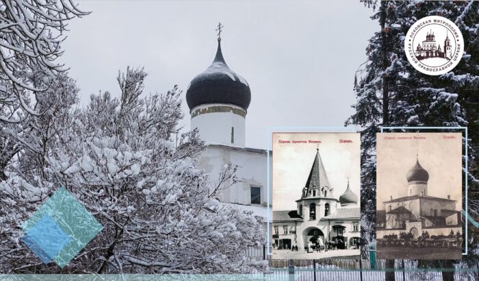 Церковь Михаила и Гавриила Архангелов – один из ранних памятников псковской школы зодчества. Сохранившаяся в интерьере плита датирует первую постройку церкви 1339 годом, и указывает на многочисленные позднейшие перестройки. Облик его много раз менялся, но культурная ценность памятника только возросла – в нем можно увидеть отражение стилей и строительного мастерства всех прошедших эпох.