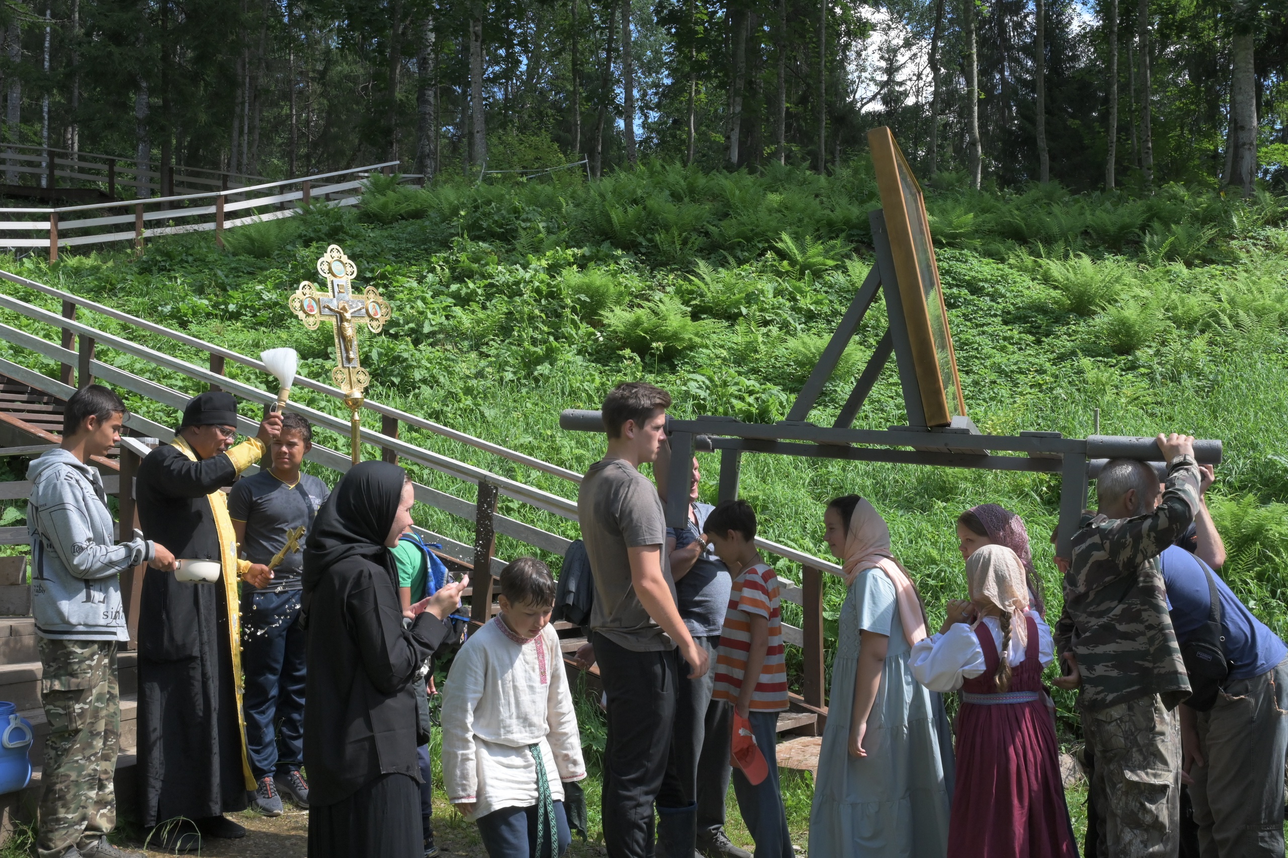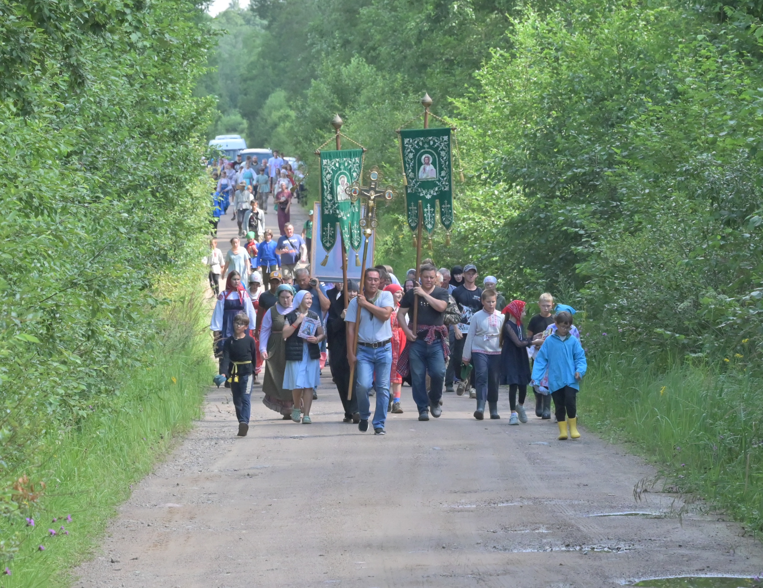 Крестоходцы прошли пять километров с хоругвями и иконой пророка Илии к деревне Симанский Лог, где на большом камне по Преданию явился святой пророк Илия, и забил целебный источник.
