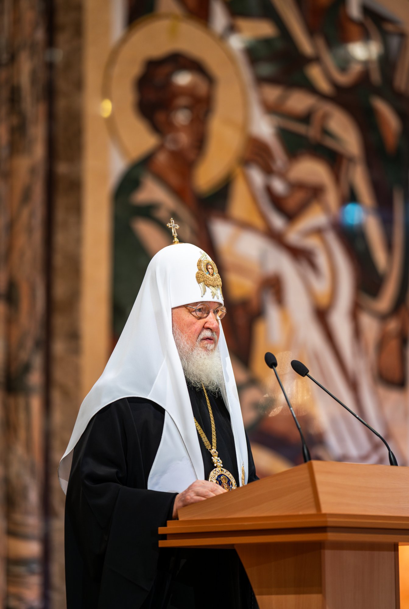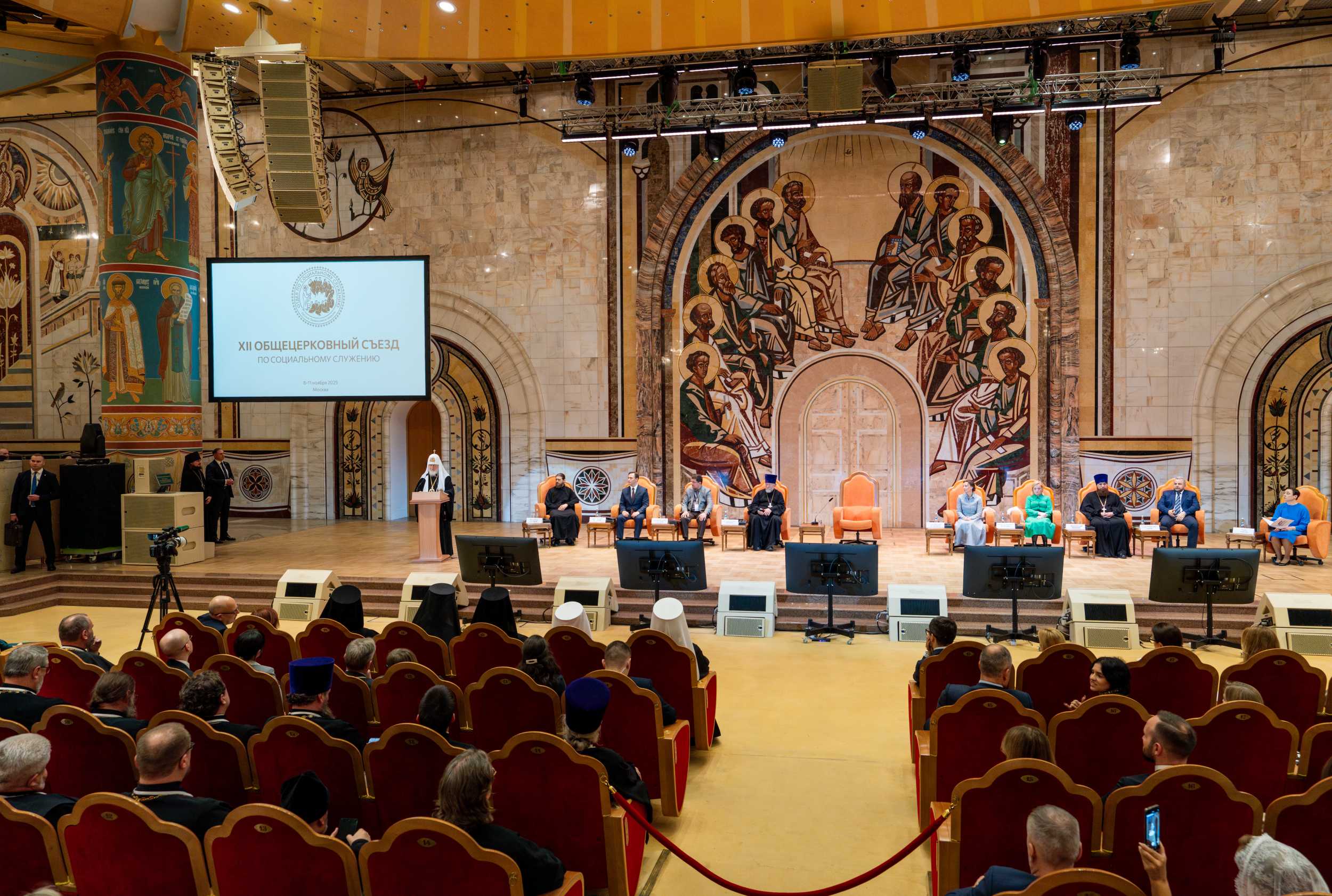 По окончании Божественной литургии в Зале церковных соборов Святейший Патриарх Московский и всея Руси Кирилл возглавил пленарное заседание XII Общецерковного съезда по социальному служению, на котором выступил с докладом.