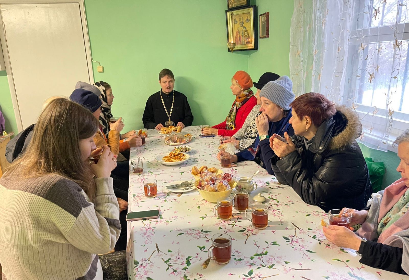 В завершение встречи состоялась душевная беседа за чаем и вкусными плюшками в трапезной храма.