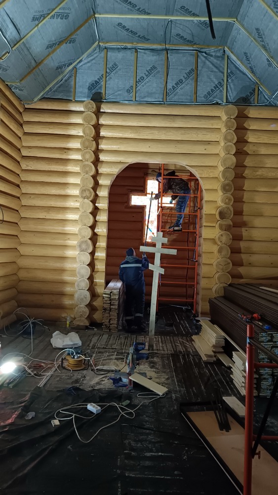 В строящемся храме святых Жен Мироносиц поселка Тямша установили окна и двери