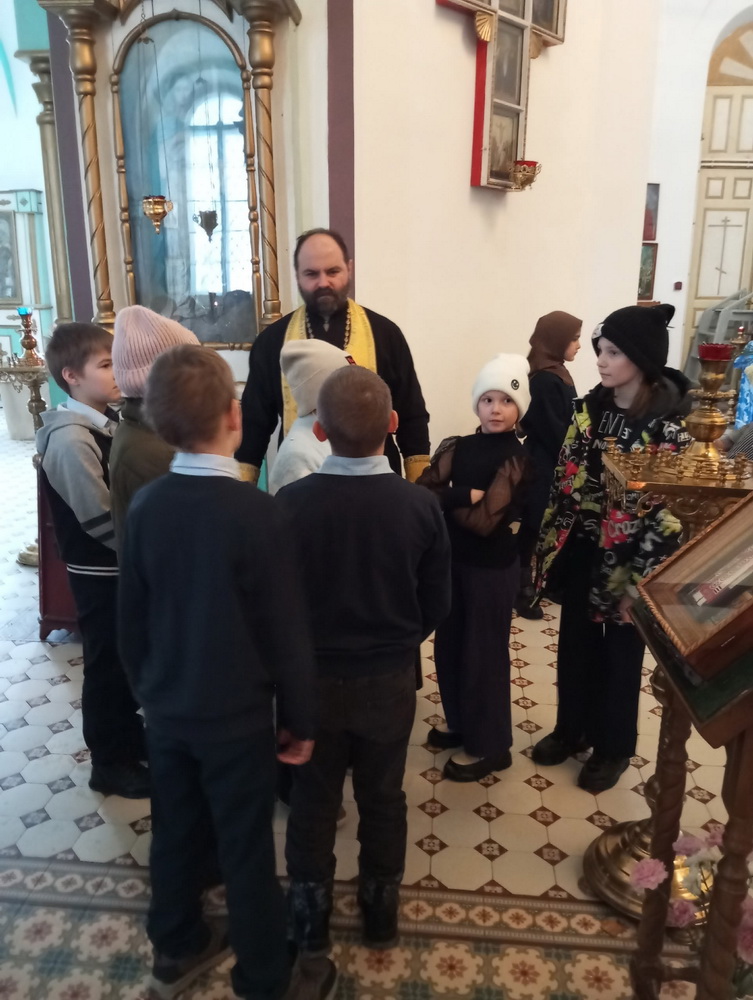 27 ноября 2025 года участники кружка «К истокам духовности» 3-б класса муниципального бюджетного общеобразовательного учреждения «Средняя школа №1» под руководством классного руководителя Елены Николаевны Романенко по доброй традиции посетили Свято-Троицкий собор города Острова.