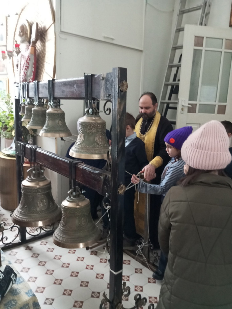 В заключение занятия маленькие гости с радостью попробовали себя в роли звонарей на передвижной колокольне, которая находится в соборе.