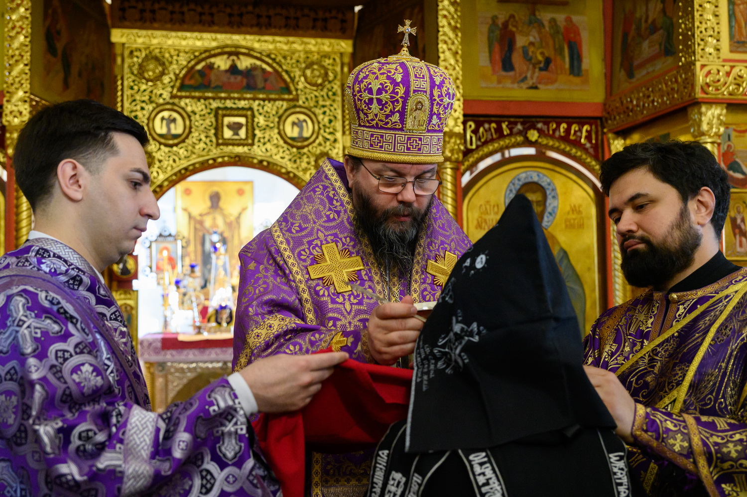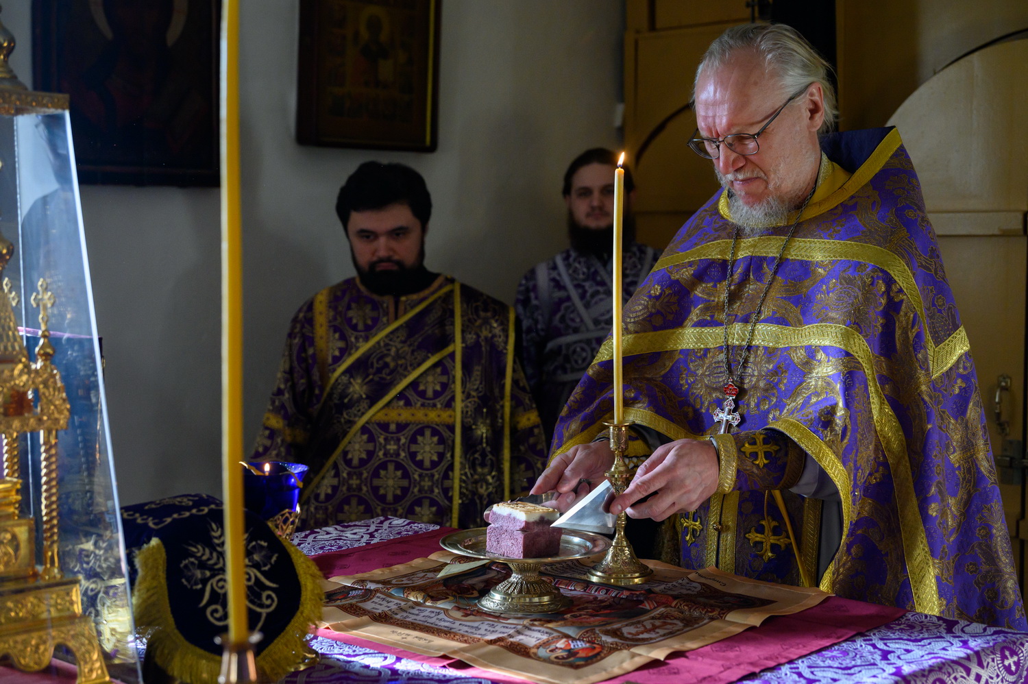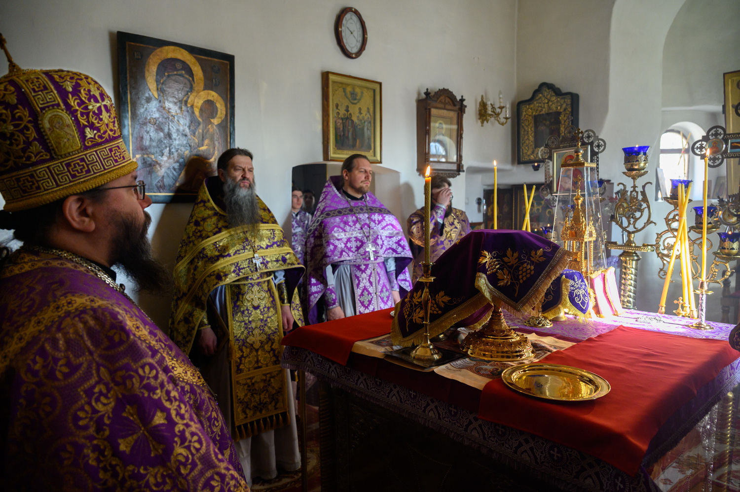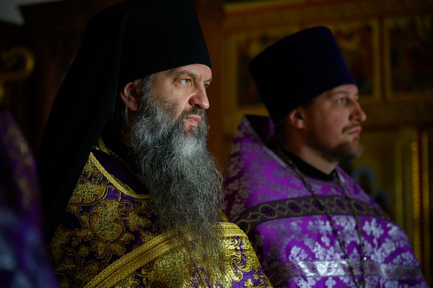 Его Высокопреосвященству сослужили: клирик Рождества Богородицы Снетогорского монастыря протоиерей Александр Савельев, игумен Иоанно-Богословского Савво-Крыпецкого монастыря игумен Всеволод (Сиканов), игумен Спасо-Преображенского Мирожского монастыря игумен Серафим (Козулин), настоятель храма святой великомученицы Варвары города Печоры иерей Димитрий Головнев.