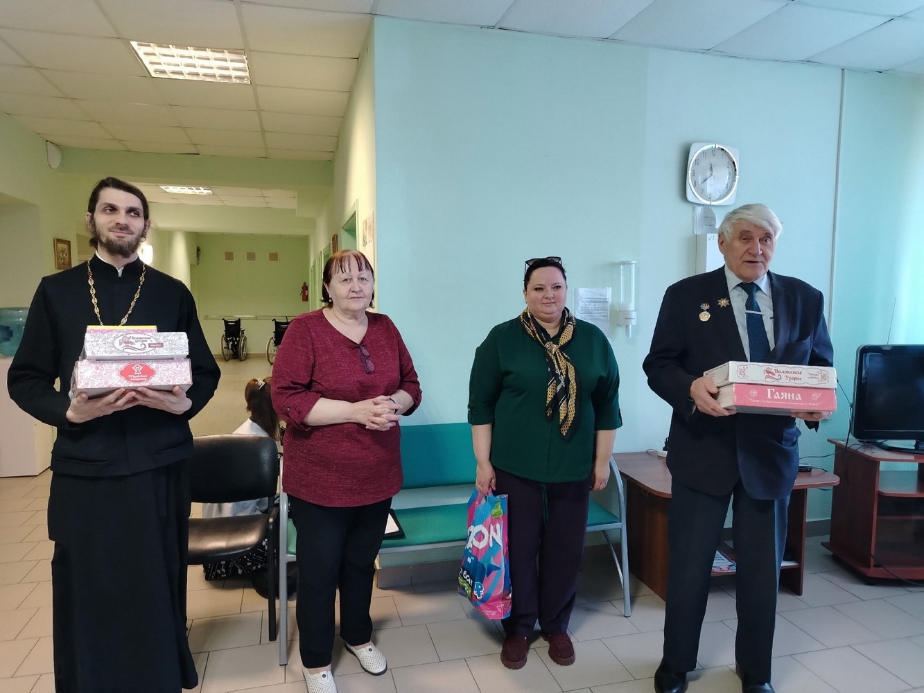 19 марта 2026 года куратор Центра православного добровольчества «Путь добра» иерей Сергий Тараканов с волонтерами Центра, а также председатель районного Совета ветеранов Александр Демьяненко навестили постояльцев дома-интерната деревни Лавры Печорского района.