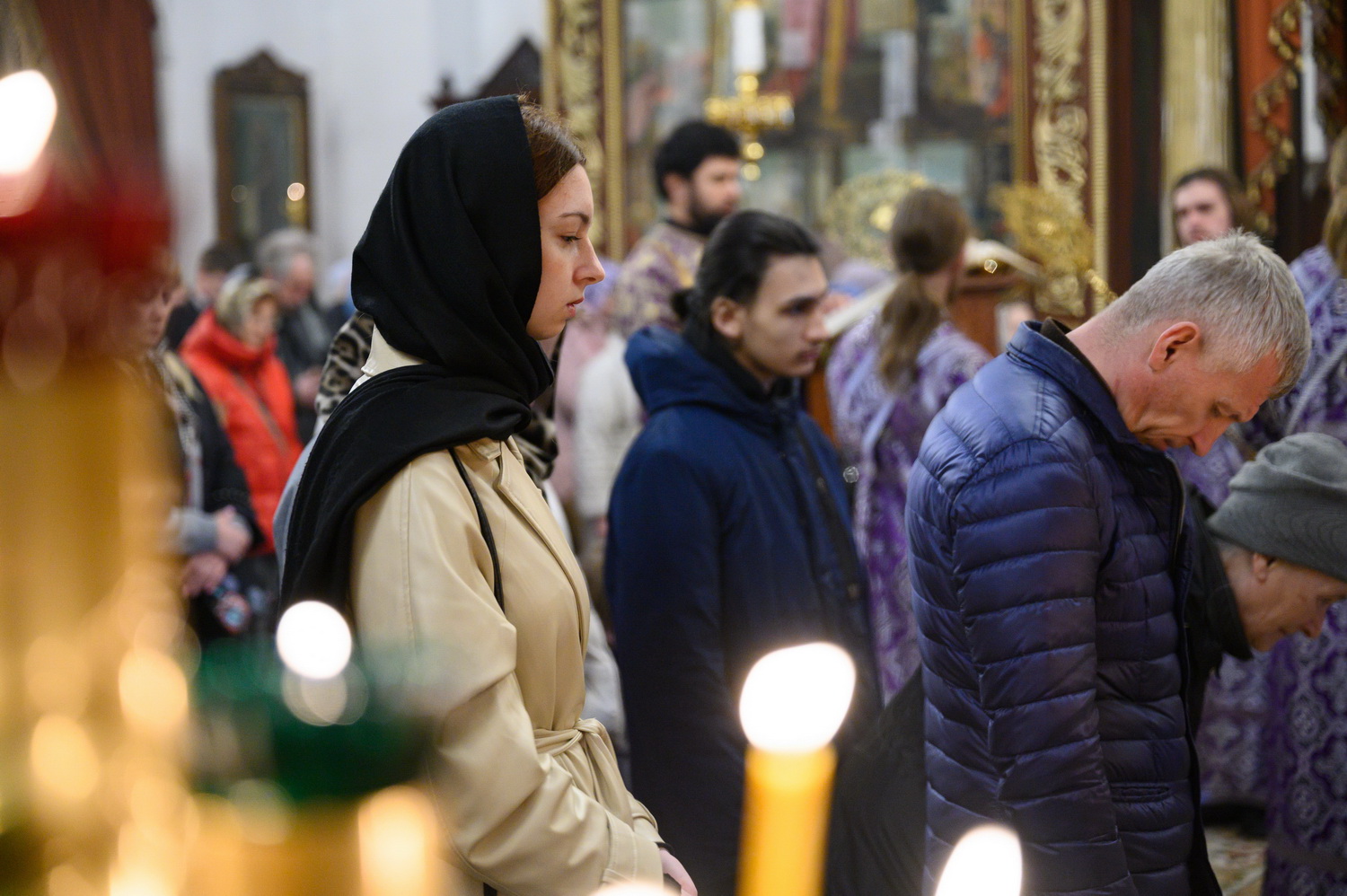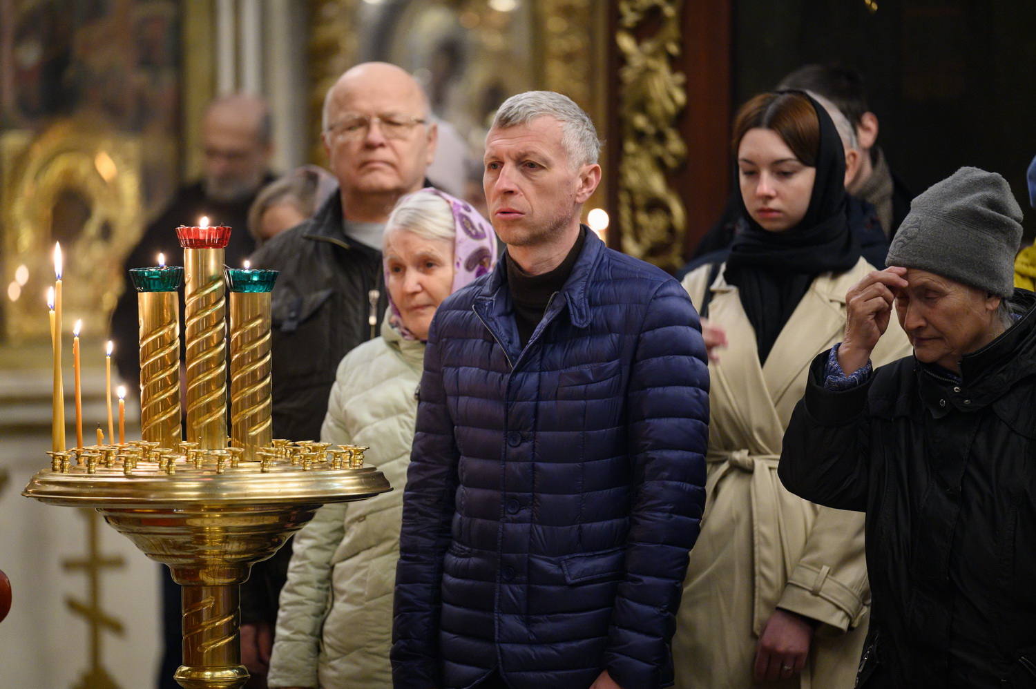 29 марта 2026 года, в Неделю 5-ю Великого поста, преподобной Марии Египетской, митрополит Псковский и Порховский Матфей совершил Божественную Литургию в Свято-Троицком кафедральном соборе города Пскова.