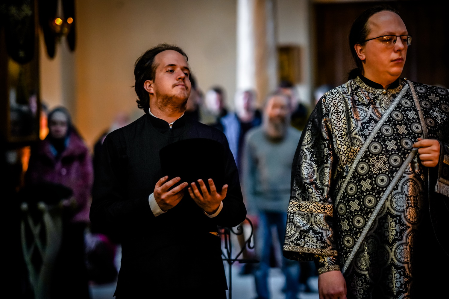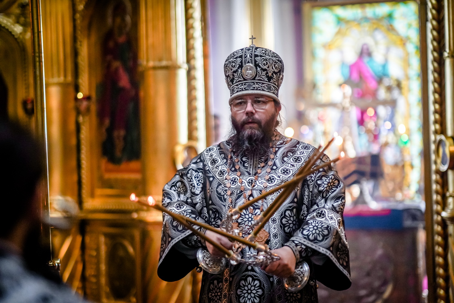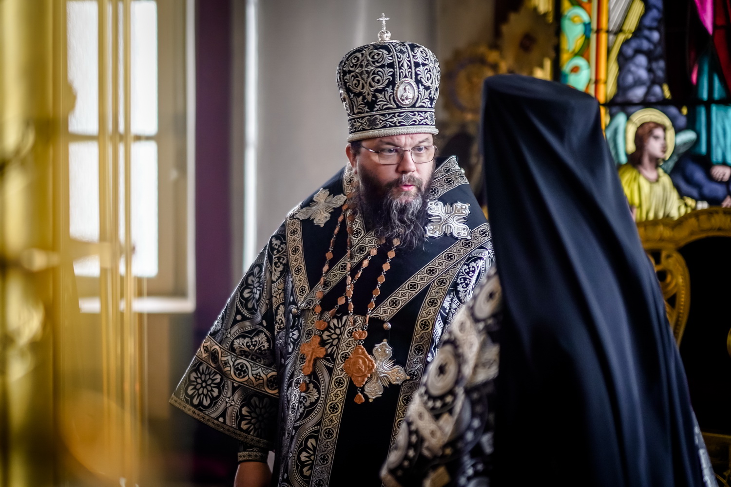 Его Высокопреосвященству сослужили архимандрит Филарет (Кольцов) с братией обители и гости в священном сане. Богослужебные песнопения исполнили: хор монастыря под управлением монаха Антония (Лисова) и Архиерейский хор Псково-Печерского монастыря под управлением Марии Быковой.