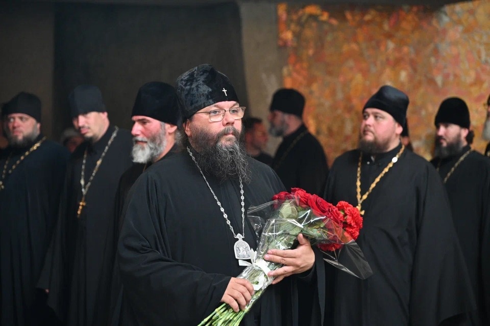 18 сентября 2025 года в Псковской областной универсальной научной библиотеке секретарь Псковского епархиального управления протоиерей Андрей Вахрушев принял участие в церемонии открытия выставки «Чужие и СВОи. Обличья и лица», в рамках Дня памяти псковичей, погибших при защите Отечества.