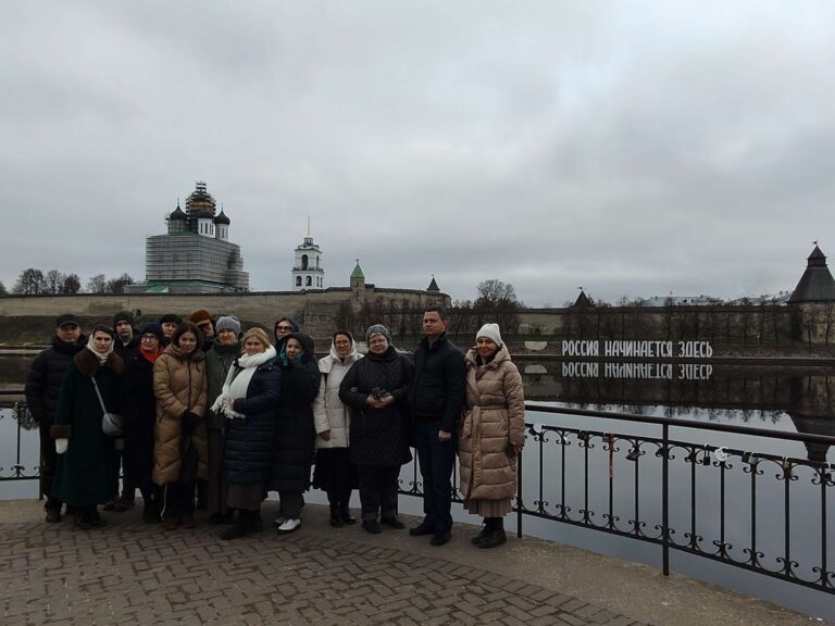 С 14 по 18 ноября 2025 года по благословению Преосвященного митрополита Псковского и Порховского Матфея сотрудники Благотворительного Фонда «Христианское милосердие», действительные члены Императорского Православного Палестинского Общества, представители Центральной клинической больницы святителя Алексия Митрополита Московского и Марфо-Мариинской обители милосердия посетили святыни Псковской епархии. В первый день