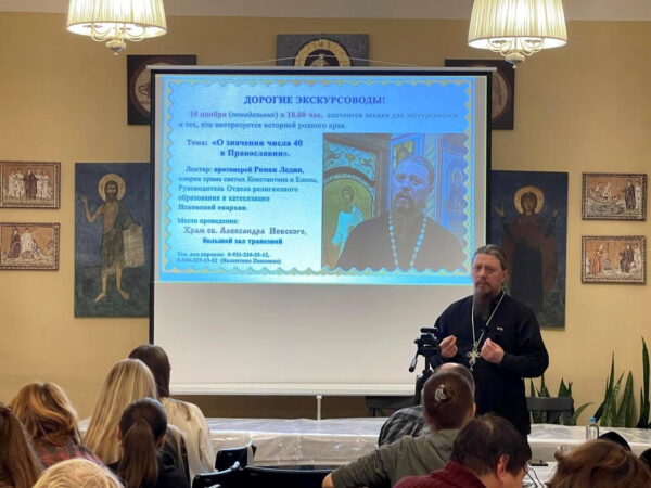 10 ноября 2025 года в большом зале трапезной храма святого благоверного великого князя Александра Невского города Пскова прошла лекция на тему: «О значении числа 40 в Православии». Беседовал с экскурсоводами и теми, кто интересуется историей родного края, руководитель отдела религиозного образования и катехизации Псковской епархии,