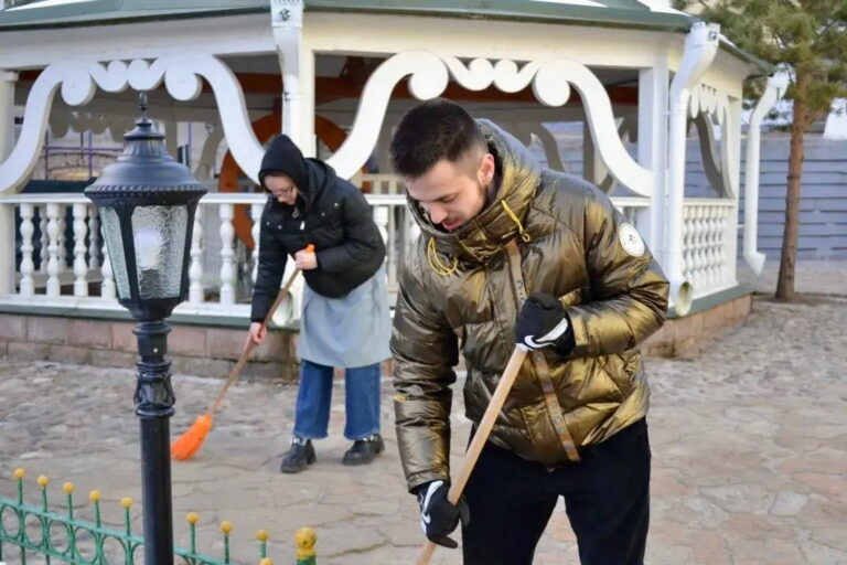 С 6 по 8 марта 2026 года участники сводных студенческих отрядов Псковского государственного университета, псковских колледжей и техникумов приняли участие в весенней уборке территории Свято-Успенского