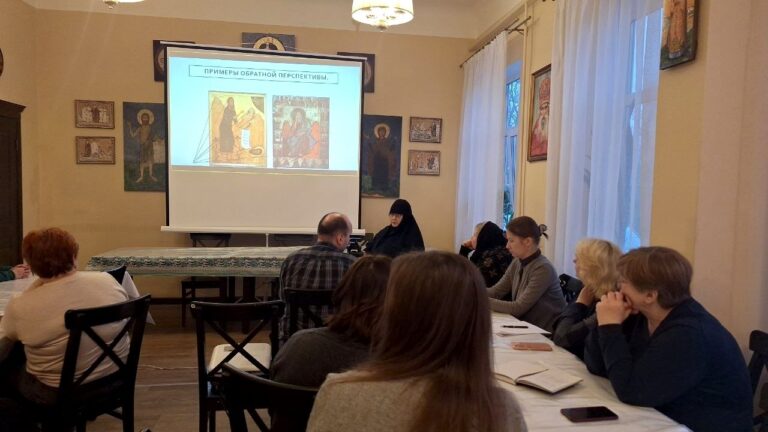 9 марта 2026 года в большом зале трапезной храма святого благоверного великого князя Александра Невского города Пскова прошла лекция на тему: «Символика православных икон: Символика цвета. Символы святости. Значение образов и символов на иконе. Домашняя и храмовая иконы». Очередную беседу с экскурсоводами и теми, кто