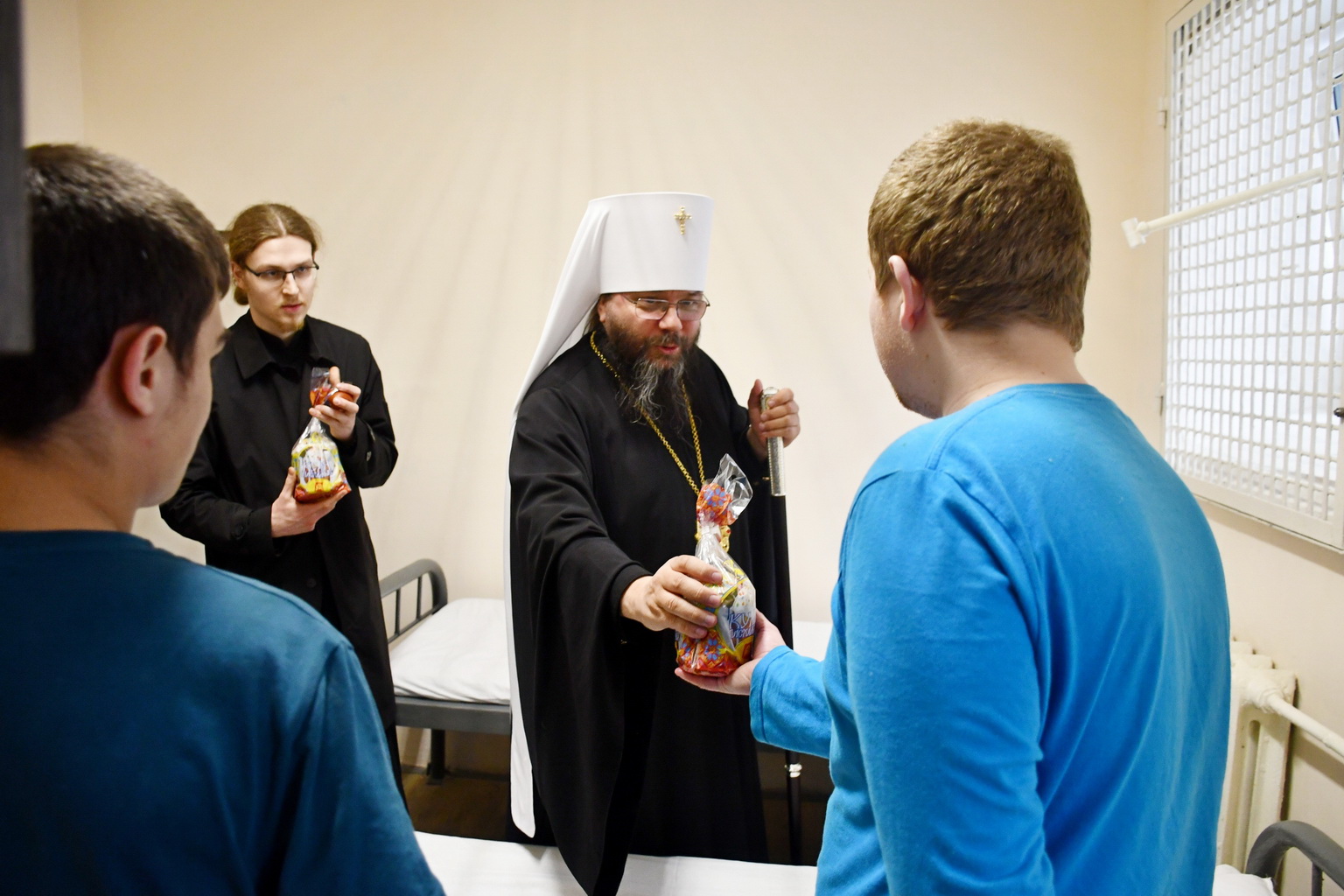 Владыка Матфей посетил храм Анастасии Узорешительницы, расположенный на территории следственного изолятора, где освятил пасхальные куличи и яйца. Затем совершил обход камер для содержания женщин и несовершеннолетних и поздравил подозреваемых и обвиняемых со Светлым Христовым Воскресением, пожелал всем здоровья, пасхальной радости, избавления от грехов и скорейшего возвращения домой к своим семьям, а также вручил пасхальные подарки.