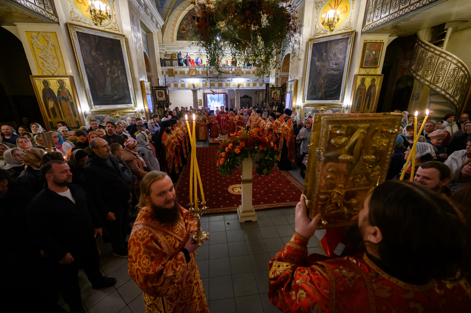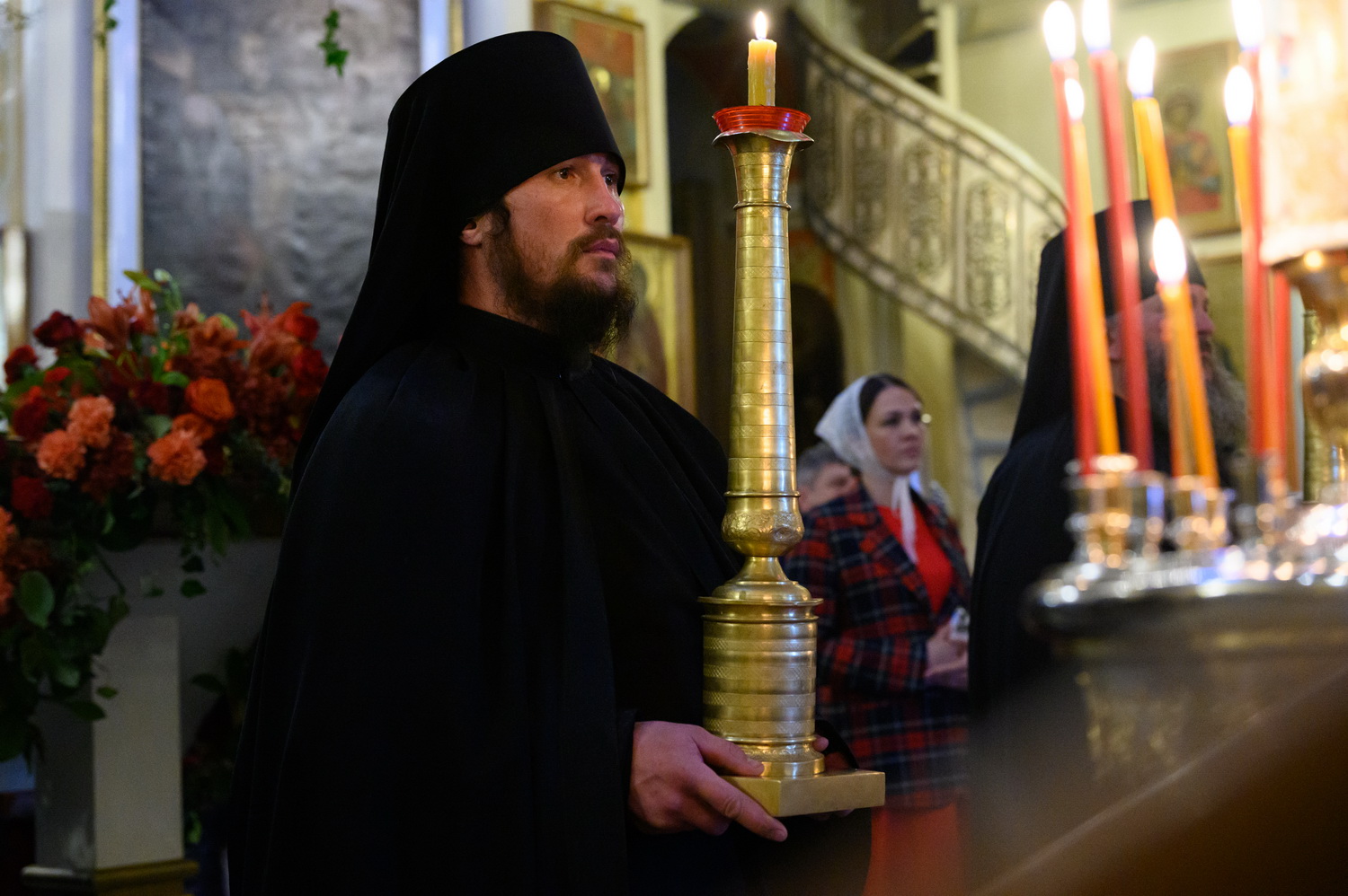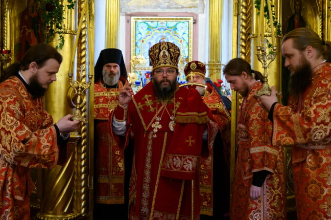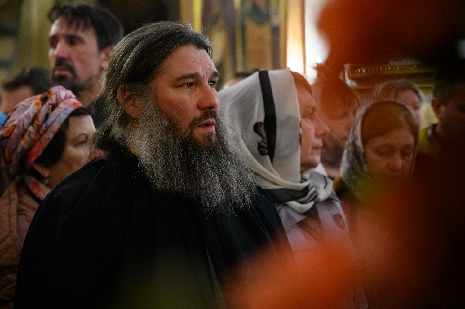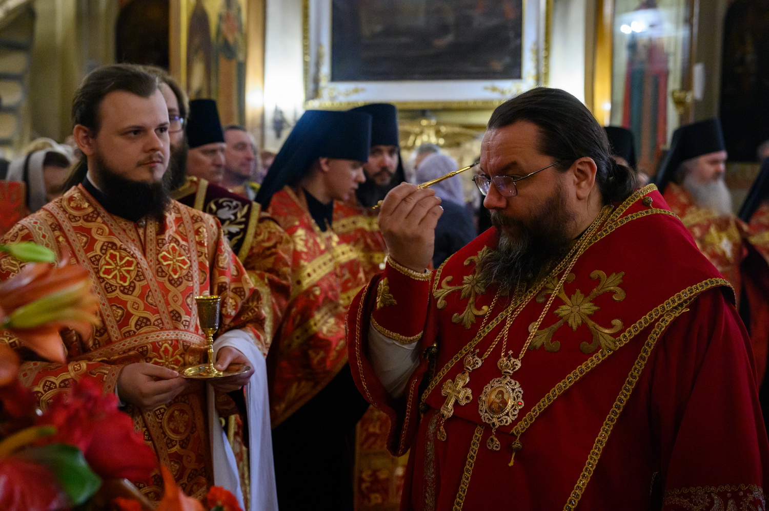 Его Высокопреосвященству сослужили архимандрит Марк (Быстриков) с братией обители и гости в священном сане. Песнопения исполнили братский хор под управлением монаха Антония (Лисова) и Архиерейский хор под управлением Марии Быковой. За богослужением молились братия обители, студенты Псково-Печерской духовной семинарии, а также многочисленные прихожане и паломники.