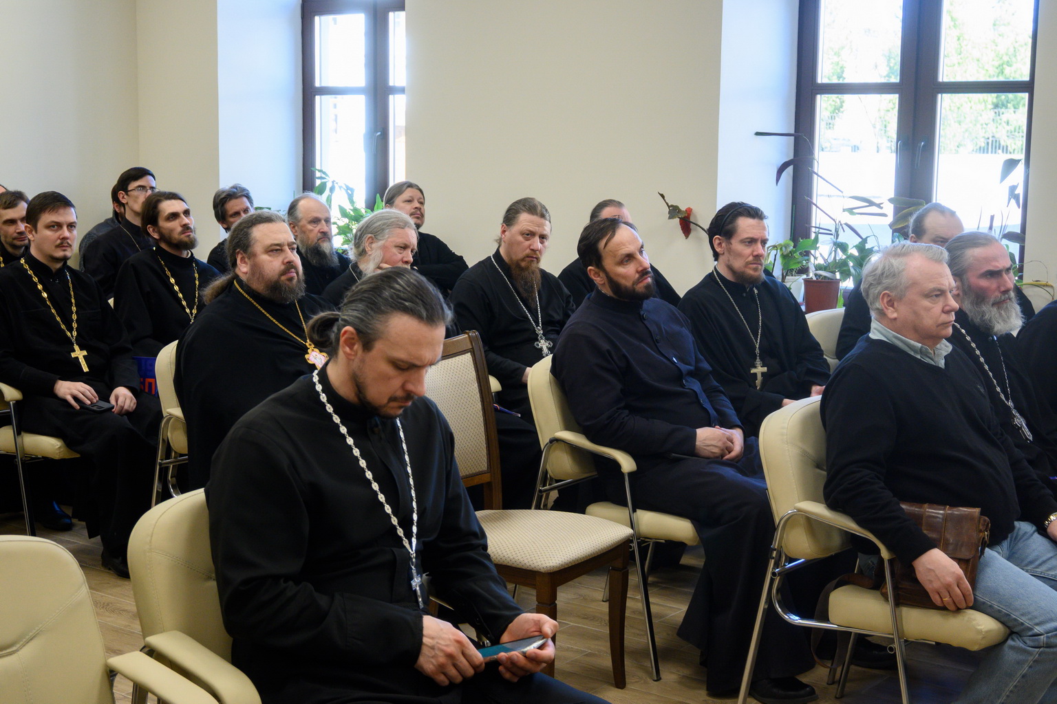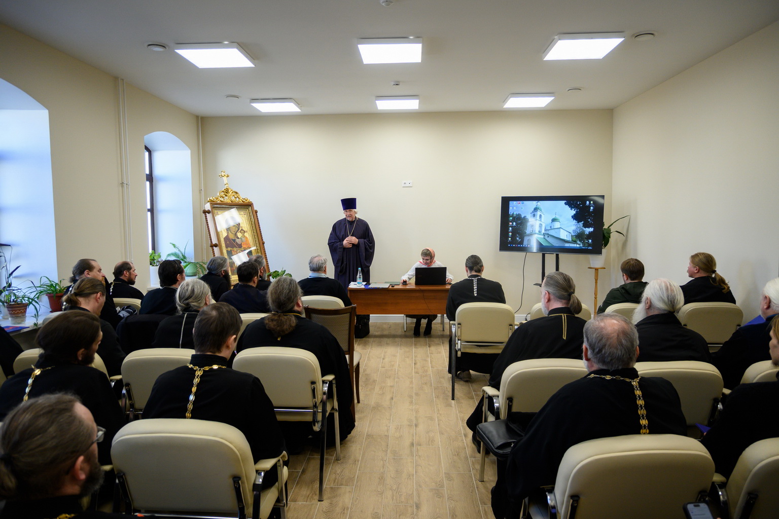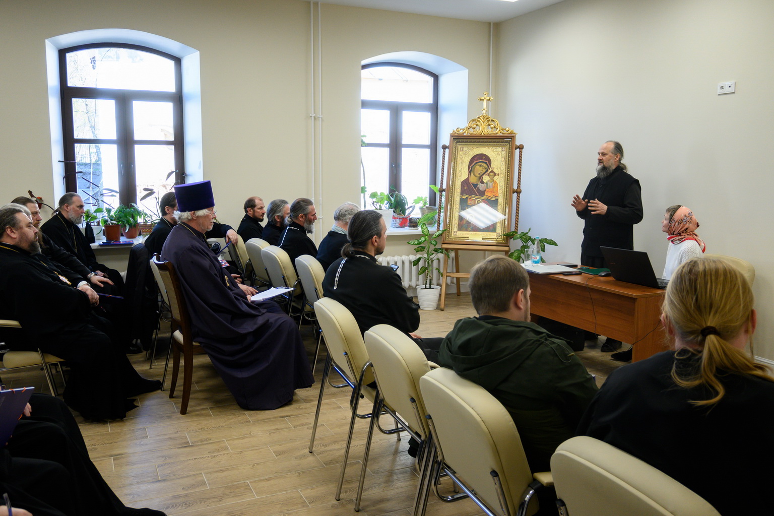20 апреля 2026 года в Псковском епархиальном управлении под председательством благочинного протоиерея Андрея Большанина состоялось собрание духовенства города Пскова. В работе собрания также приняли участие секретарь Псковского епархиального управления протоиерей Андрей Вахрушев, наместник Свято-Благовещенской Никандровой пустыни архимандрит Спиридон (Иващенко) и настоятель Спасо-Преображенского Мирожского монастыря игумен Серафим (Козулин).