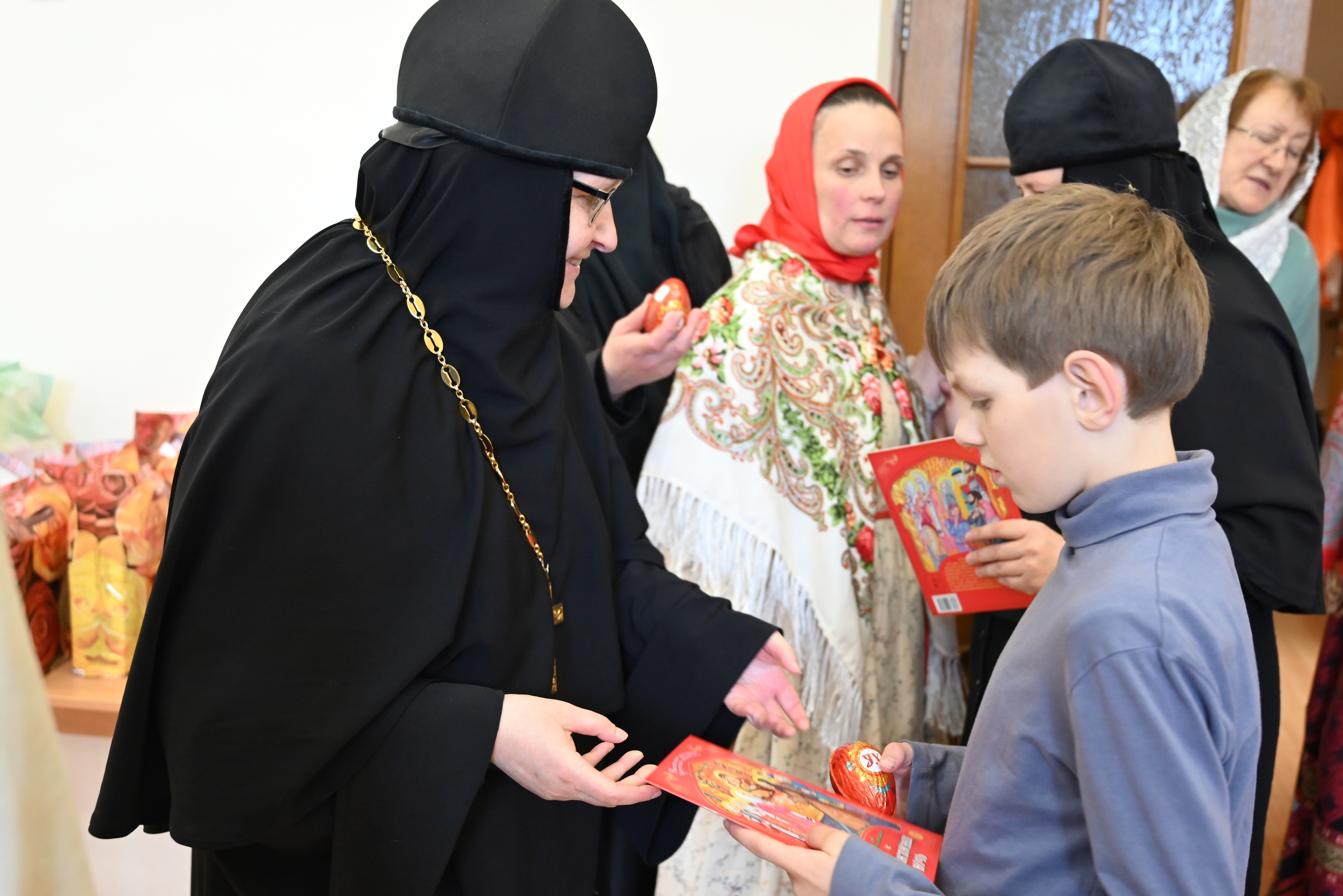 19 апреля 2026 года, в день Антипасхи, в Спасо-Елеазаровском монастыре прошел Пасхальный праздник воспитанников Воскресной школы обители и прихода храма Рождества Христова на подворье Спасо-Преображенского Мирожского монастыря в поселке Красиковщина.