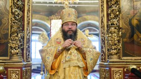 Владыке митрополиту сослужила братия обители в священном сане. За богослужением молились многочисленные верующие, собравшиеся в эту ночь встретить новый год благости Божией с молитвой.
