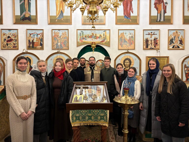 3 ноября 2025 года участники Молодежного центра Псковской епархии «Трилучье» побывали в храме преподобного Сергия Радонежского (с Залужья) города Пскова. Гостей встретил настоятель храма преподобного Сергия Радонежского (с Залужья) иерей