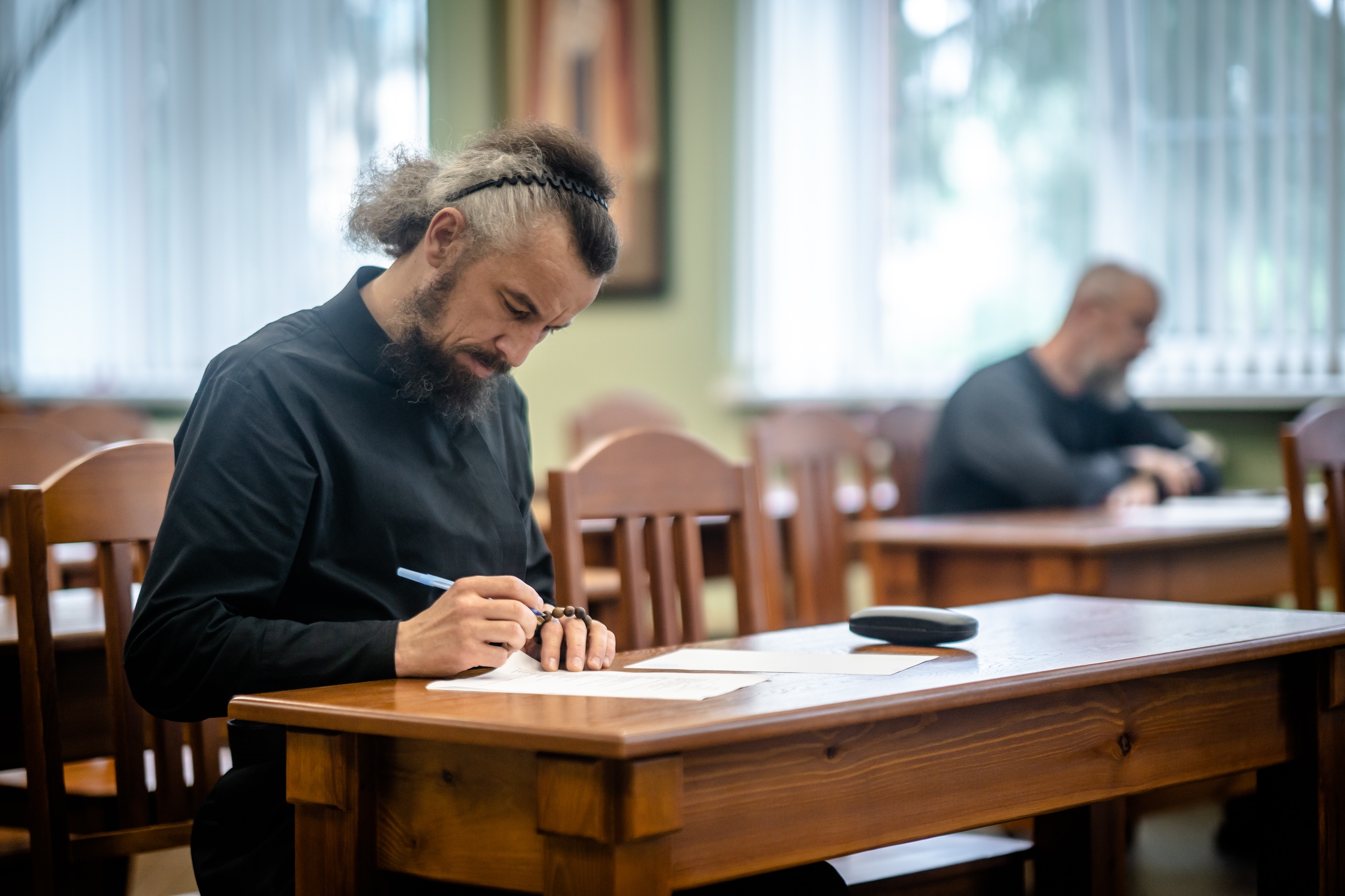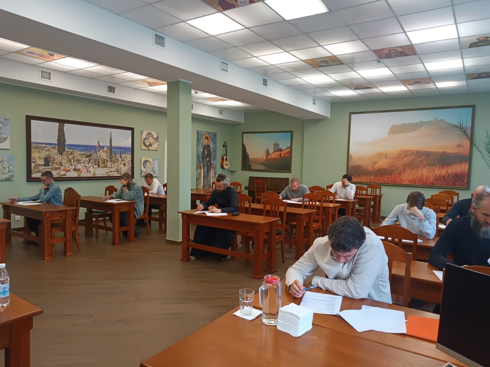 22 июля 2025 года начались вступительные экзамены для желающих обучаться в Псково-Печерской Духовной семинарии. Абитуриенты, не сдававшие ЕГЭ, писали тесты по истории России.