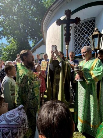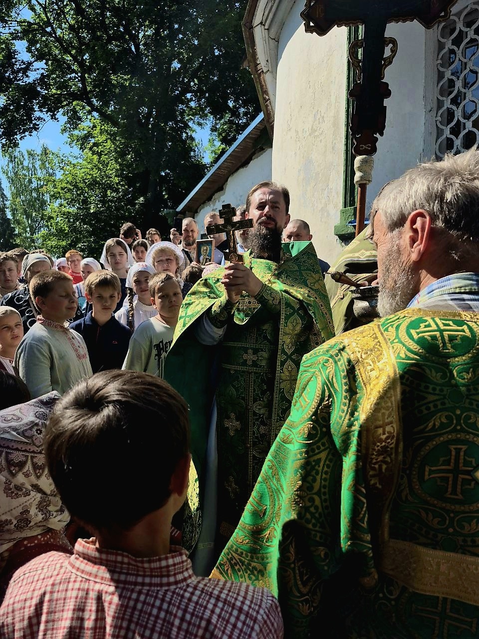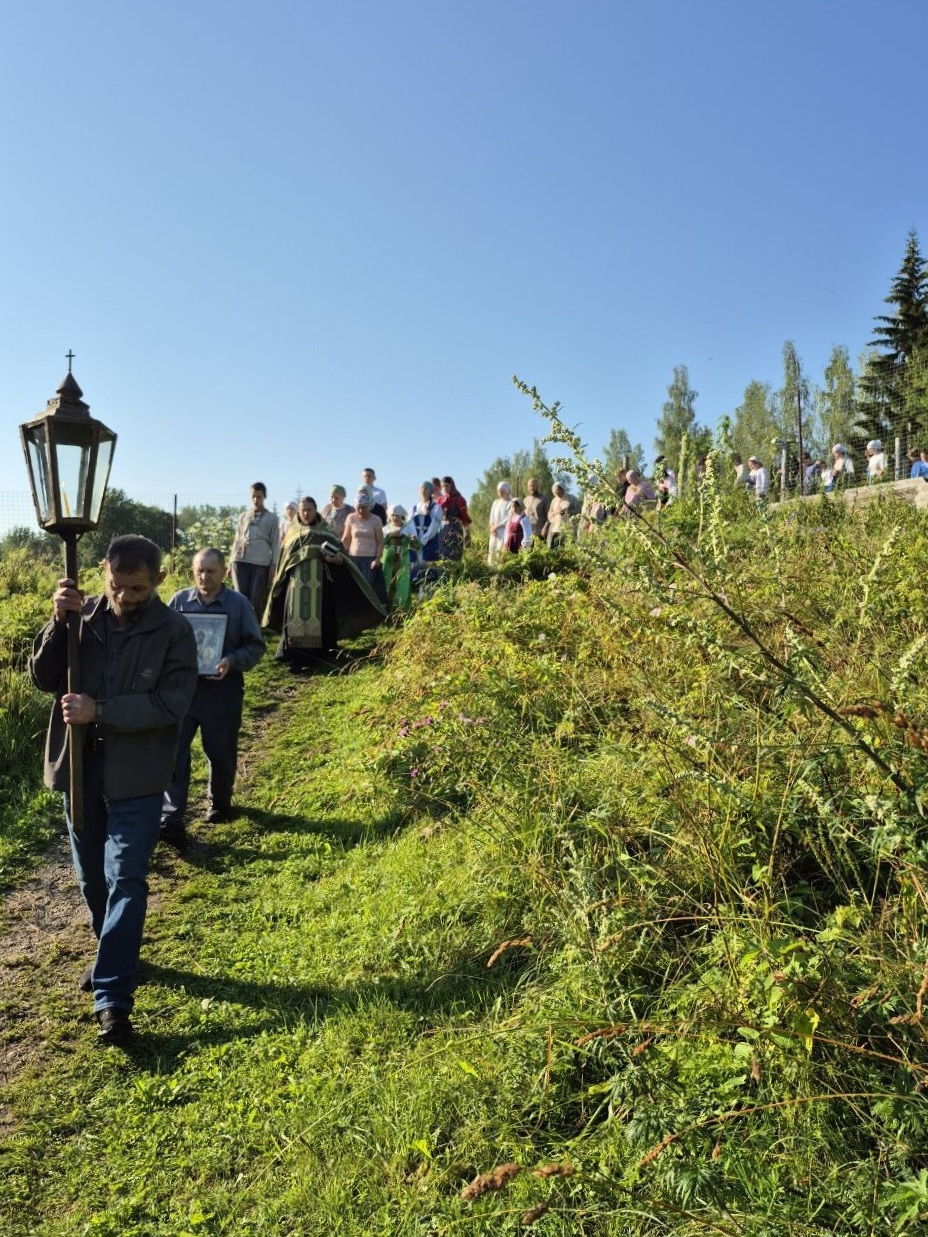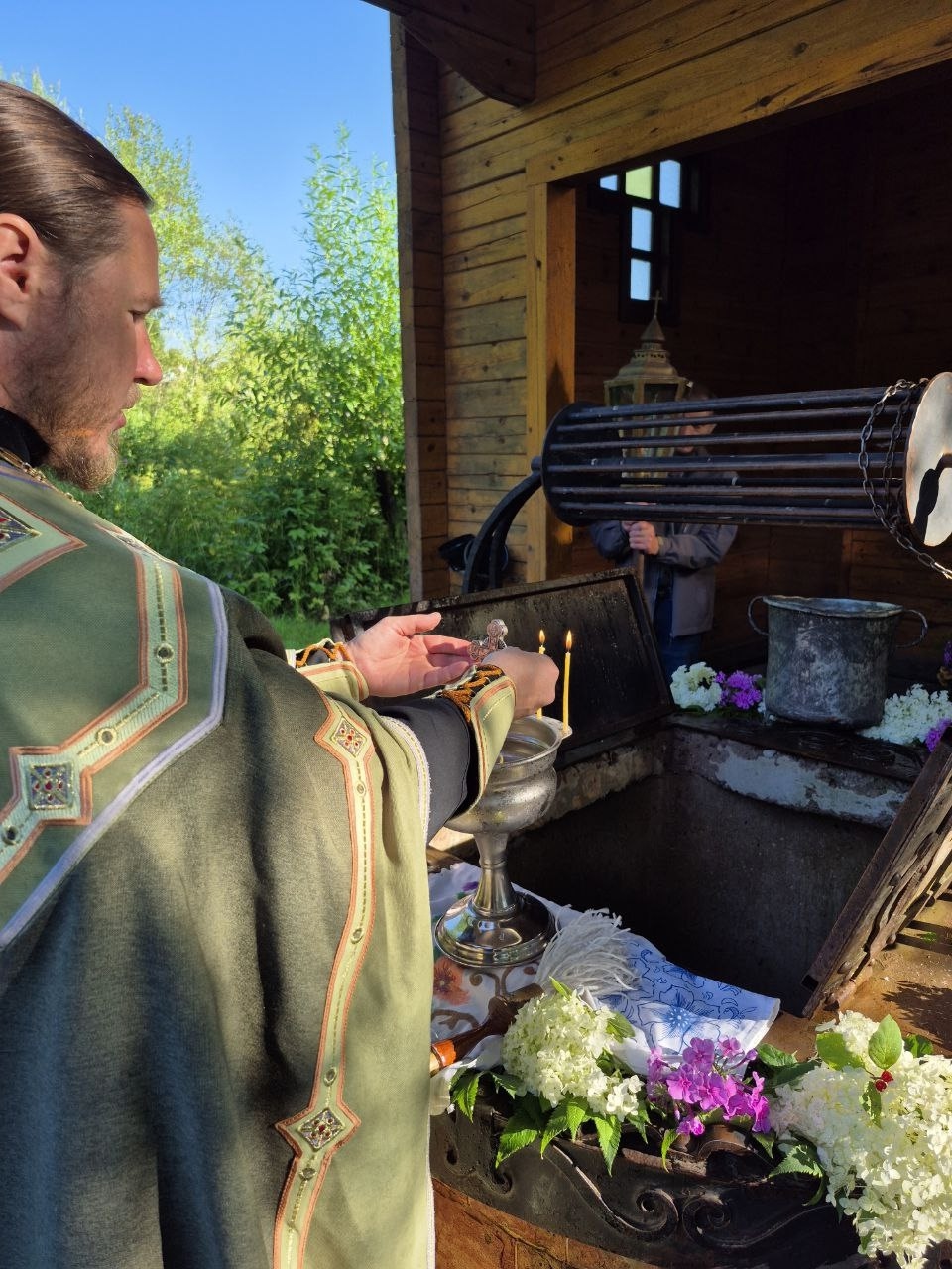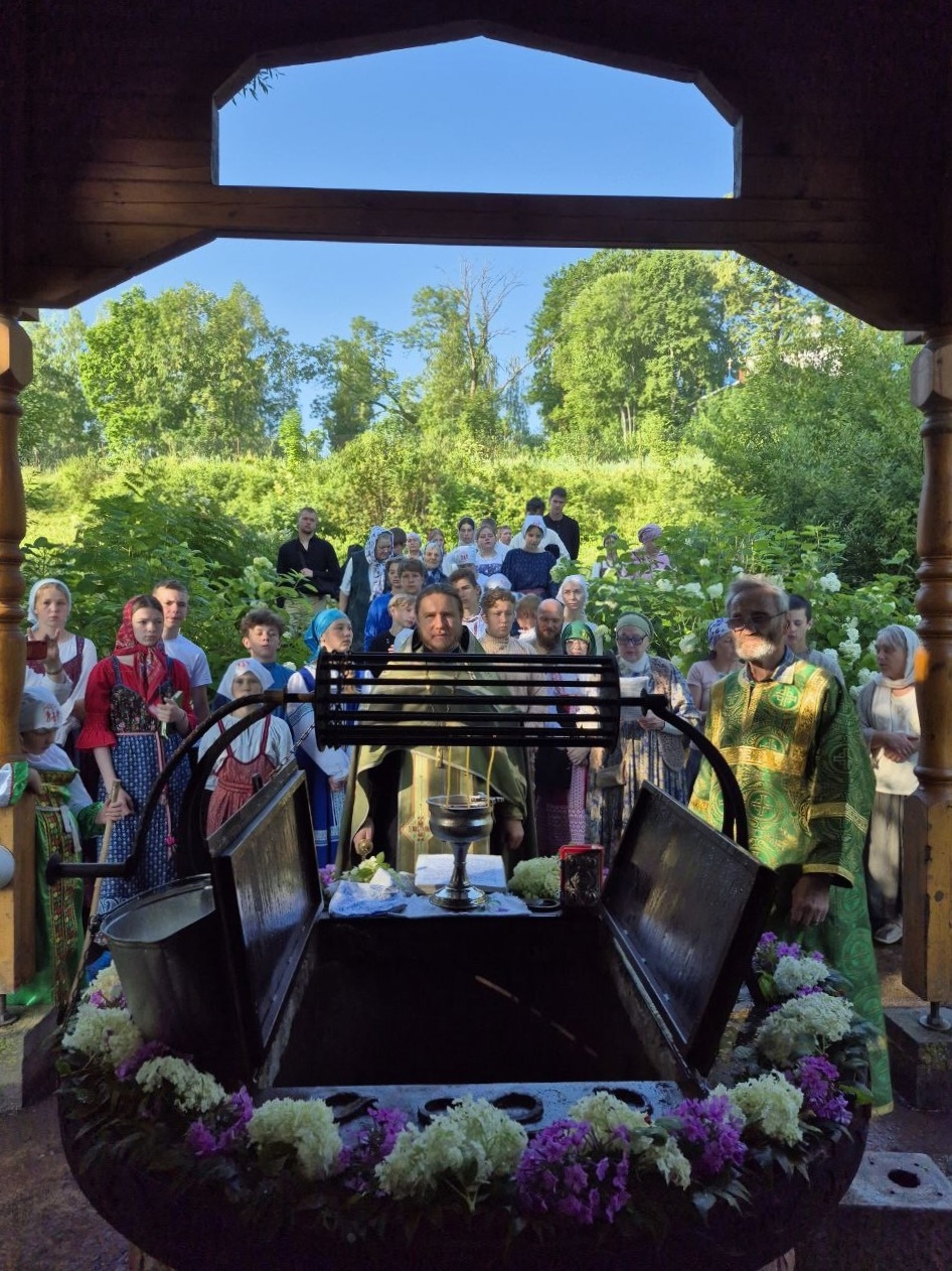 По окончании Литургии был совершен крестный ход к часовне над источником преподобного Серапиона Изборского, где был совершен молебен святому покровителю этих мест.