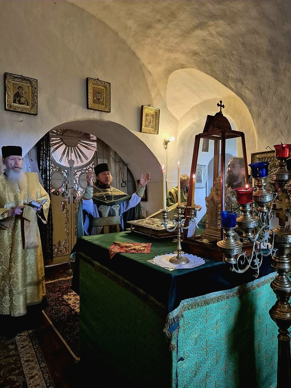 25 июля 2025 года, в день памяти преподобного Серапиона Изборского, в храме Рождества Пресвятой Богородицы поселка Старый Изборск Печорского района, где под спудом покоятся мощи святого, было совершено праздничное богослужение.