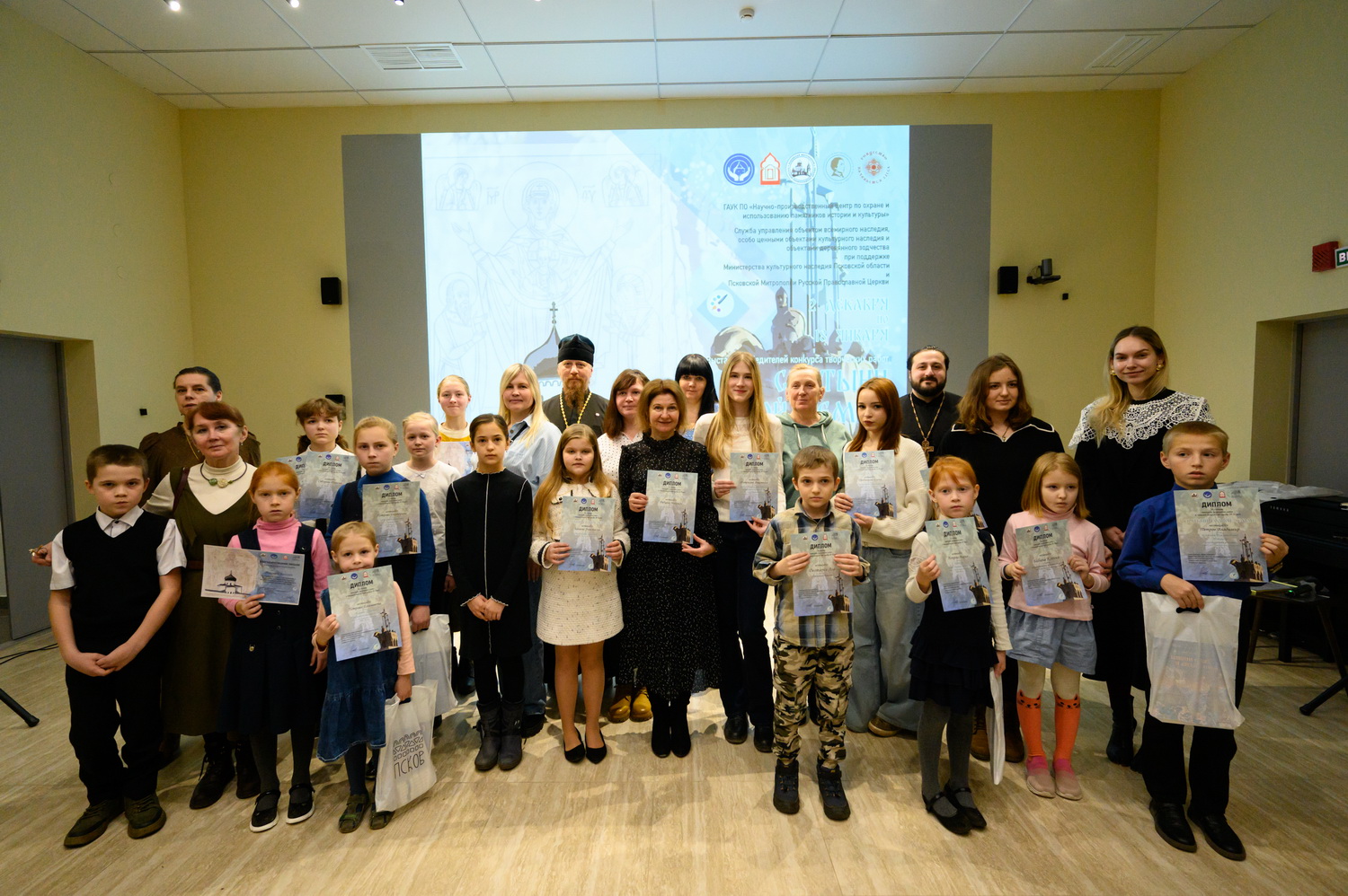 Участниками мероприятия стали: руководитель Отдела религиозного образования и катехизации Псковской епархии протоиерей Роман Ледин, настоятель храма святителя Николая Чудотворца деревни Устье Псковского района иеромонах Авраамий (Тимофеев), руководитель Молодежного отдела Псковской епархии иерей Тигрий Агаджанян, заместитель директора ГАУК ПО «НПЦ по охране памятников» Мария Лисенкова, директор школы иконописи «Киноварь» при храме святителя Василия Великого (на Горке) города Пскова Надежда Прокопчук, учащиеся школ искусств Псковской области, воспитанники Воскресных школ и молодые художники.