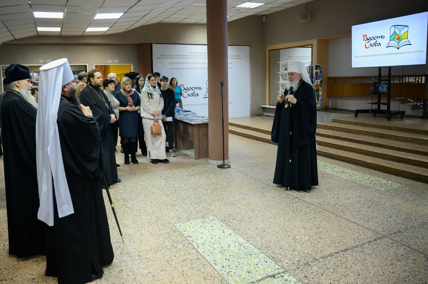 9 декабря 2025 года, в рамках работы регионального этапа XXXIV Международных Рождественских образовательных чтений «Просвещение и нравственность: формирование личности и вызовы времени» в фойе Псковской областной филармонии открылась православная книжная выставка-форум «Радость Слова».