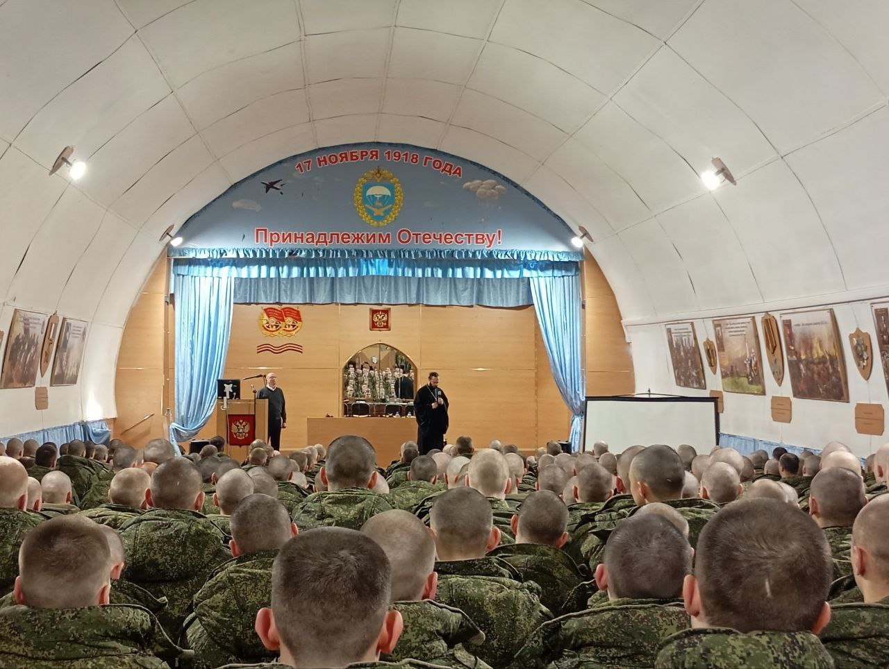 По окончании молебна Виктор Николаевич рассказывал военнослужащим о своей жизни, о том что пережил во время афганской войны, мужестве и стойкости русских воинов, вере, непреходящих ценностях русского народа, о которых он пишет в своих книгах.