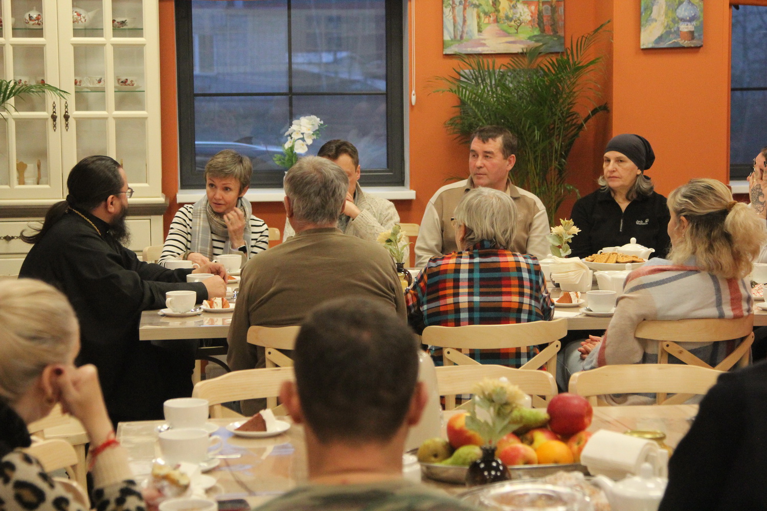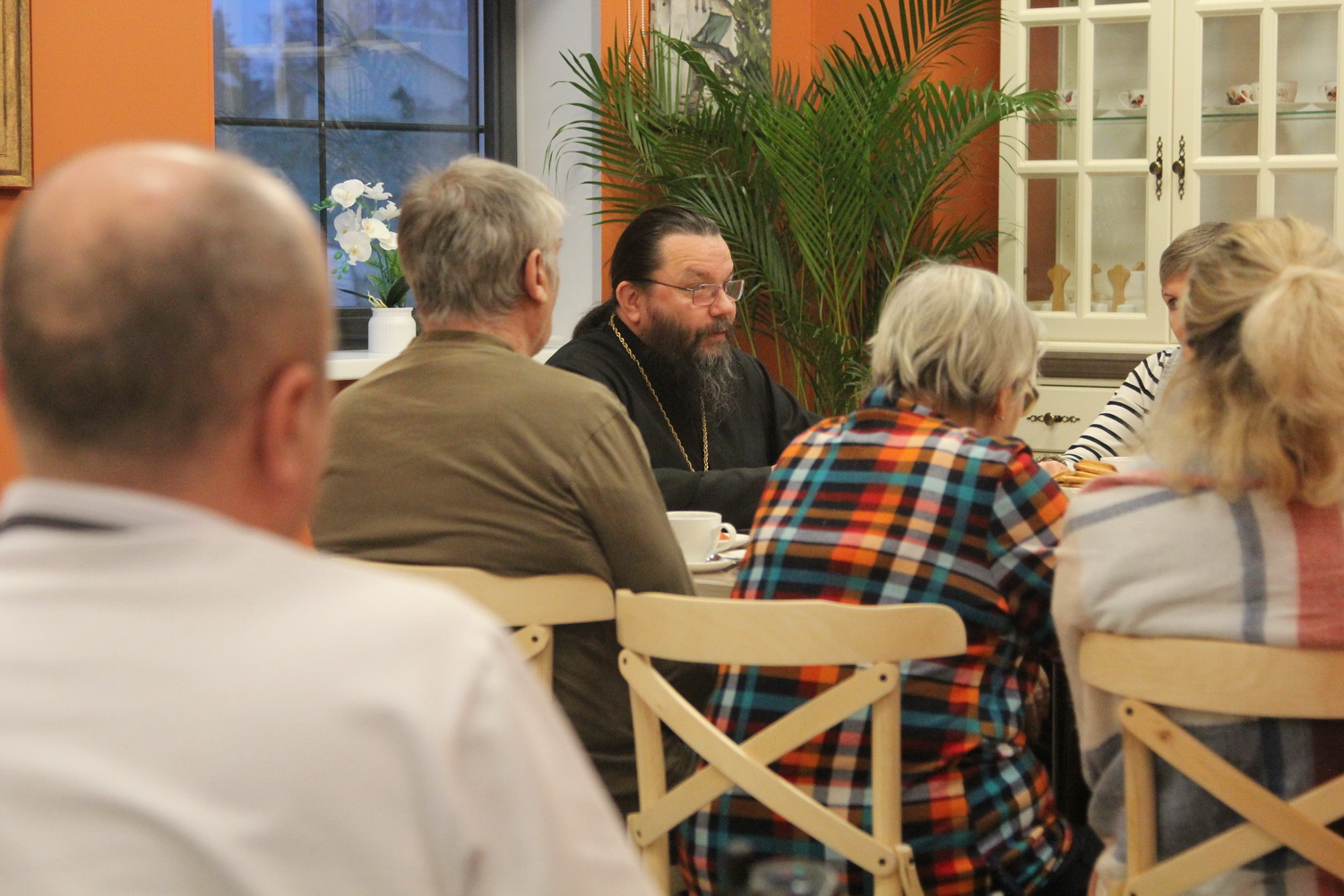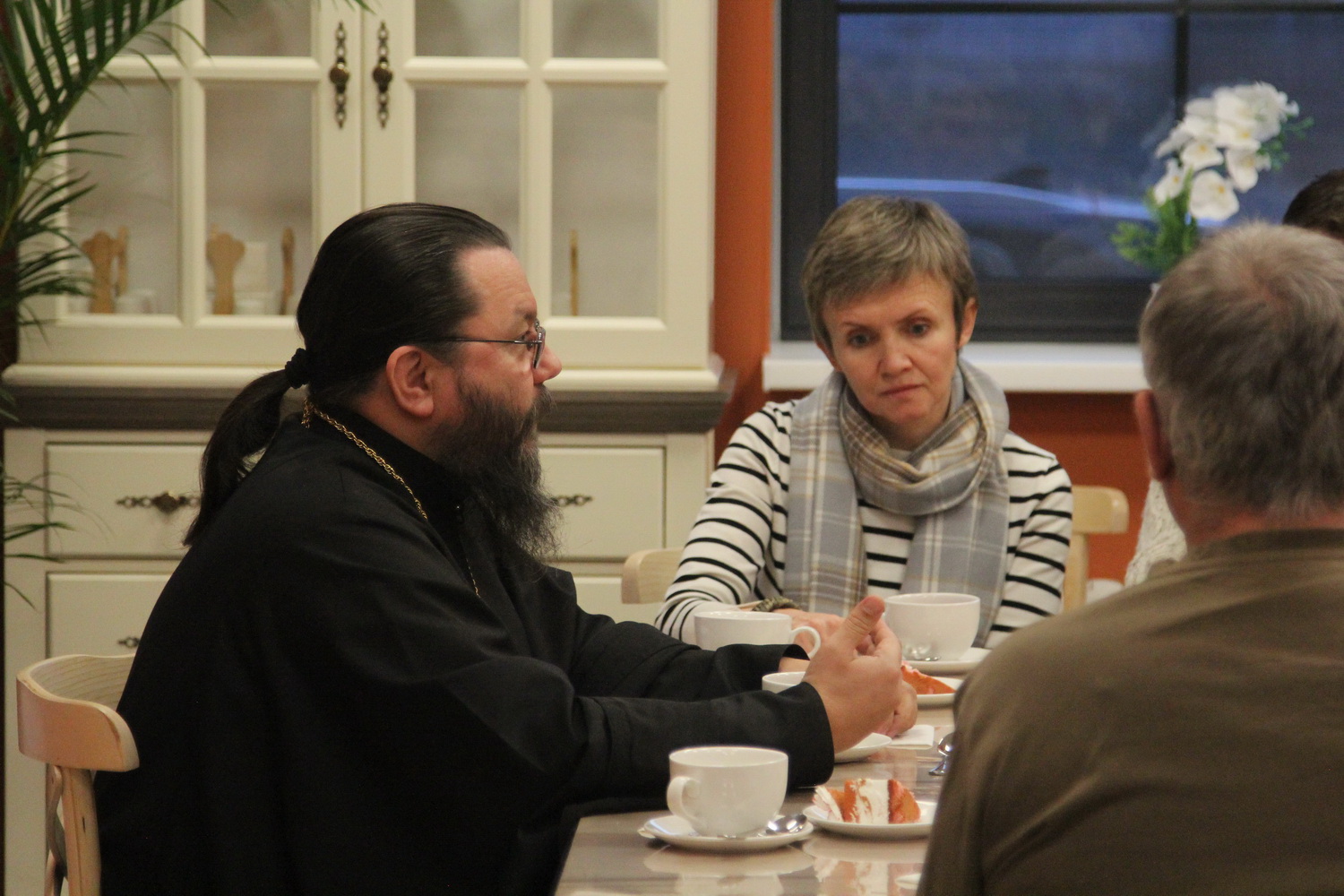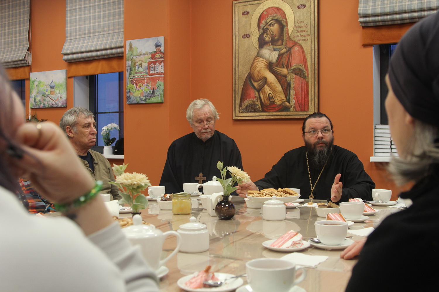 В неформальной обстановке за чайным столом митрополит Матфей пообщался с участниками специальной военной операции и их родными, ответил на вопросы и вручил участникам заезда на добрую память книги “Несвятые святые”.