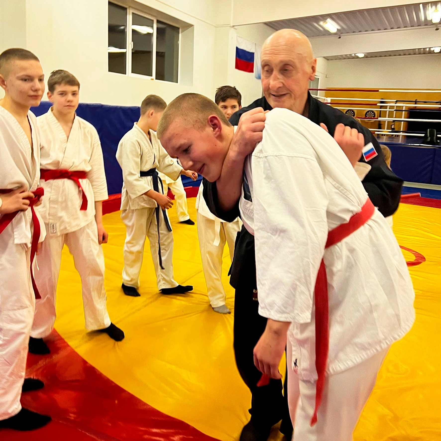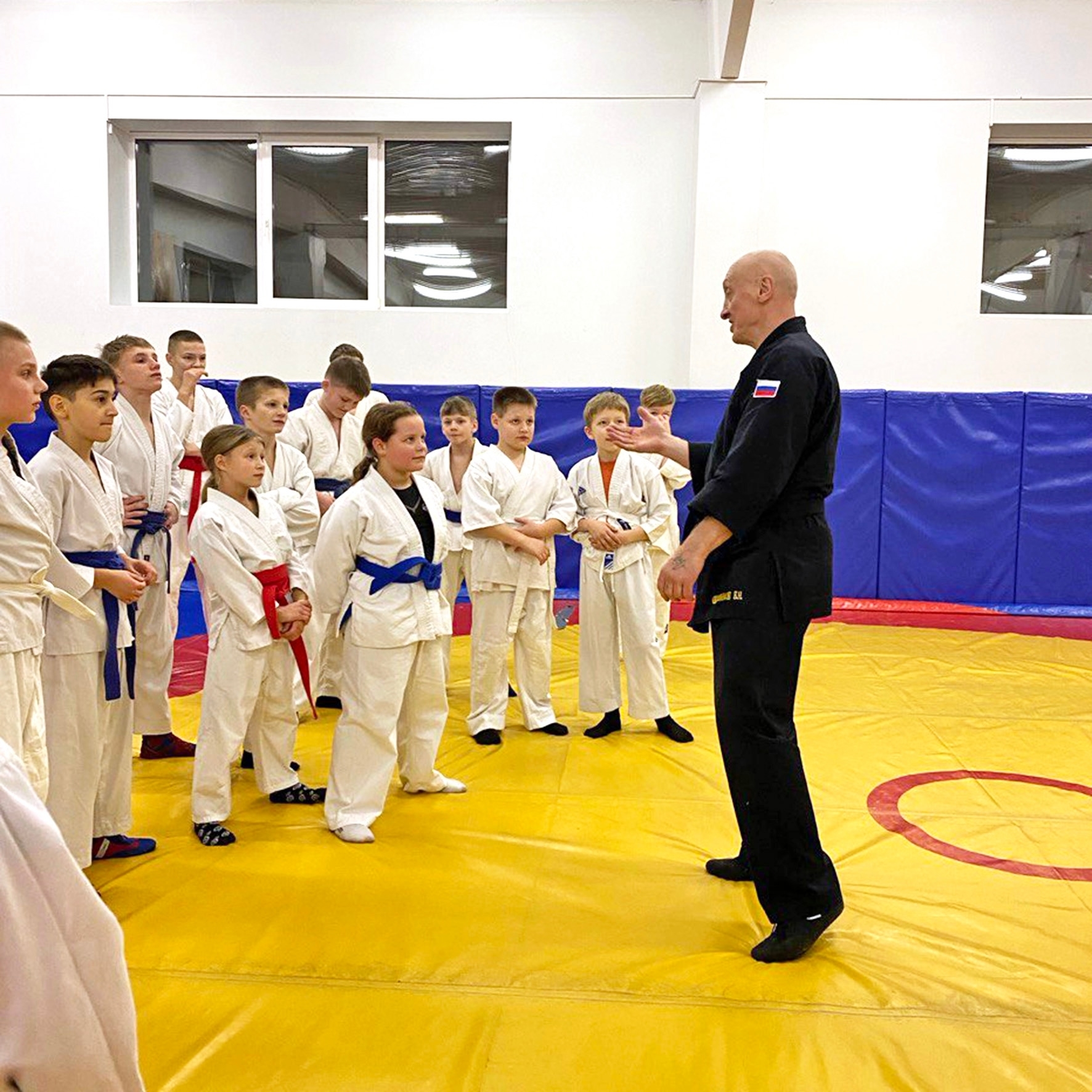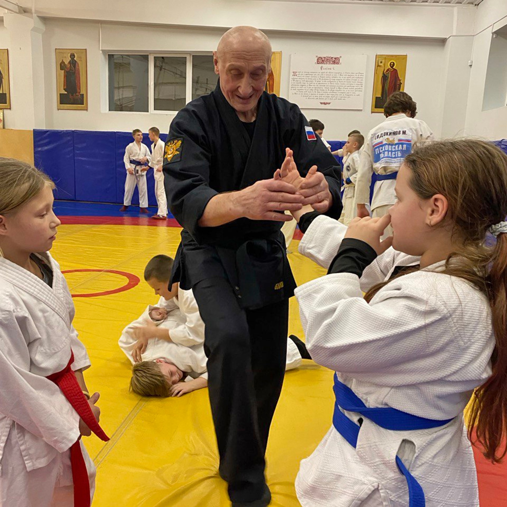 Тренировочное занятие по новой дисциплине рукопашного боя – демобою (демонстрация техники защиты и контратаки в бою с вооруженным и невооруженным противником), провел Владимир Николаевич Евдокимов, тренер высшей категории, старший тренер-преподаватель Псковской спортивной школы “Мастер”, один из основателей Федерации рукопашного боя Псковской области, мастер боевых искусств России, обладатель 4 дана.