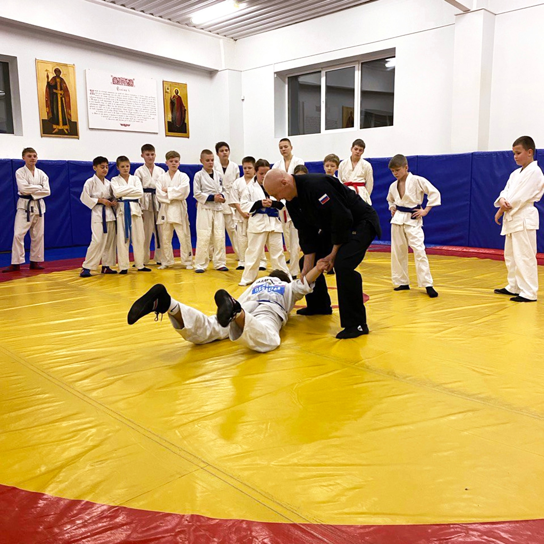 12 декабря 2025 года, в рамках работы регионального этапа XXXIV Международных Рождественских образовательных чтений «Просвещение и нравственность: формирование личности и вызовы времени», в спортивном комплексе «Дружина Довмонта» Паломнического центра Свято‑Успенского Псково‑Печорского монастыря состоялся мастер‑класс по рукопашному бою.