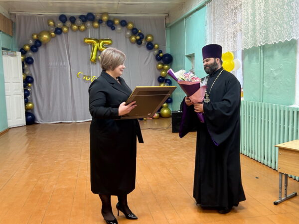 25 декабря 2025 года благочинный храмов Островского округа епархии протоиерей Роман Павлов принял участие в торжествах по случаю 75-летия МБОУ “Средняя школа №3” города Острова.