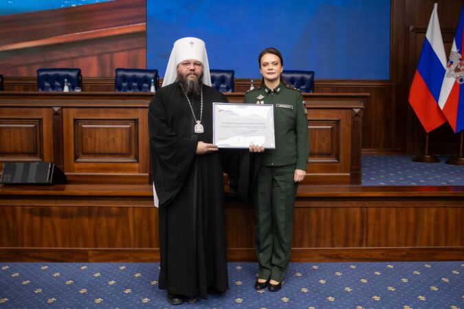 Вручила награду Владыке митрополиту председатель Государственного фонда “Защитники Отечества”, статс-секретарь – заместитель министра обороны Российской Федерации Анна Цивилева.