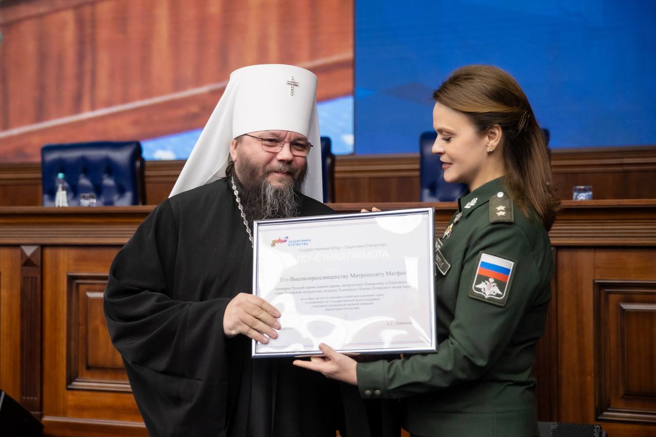 Митрополит Матфей награжден Почетной грамотой фонда “Защитники Отечества”