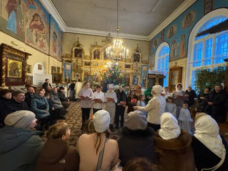 7 января 2026 года, в празднование Рождества Христова, в храме святителя Николая Чудотворца (в Любятово) города Пскова прославили Рождество Господа Бога нашего Иисуса Христа.