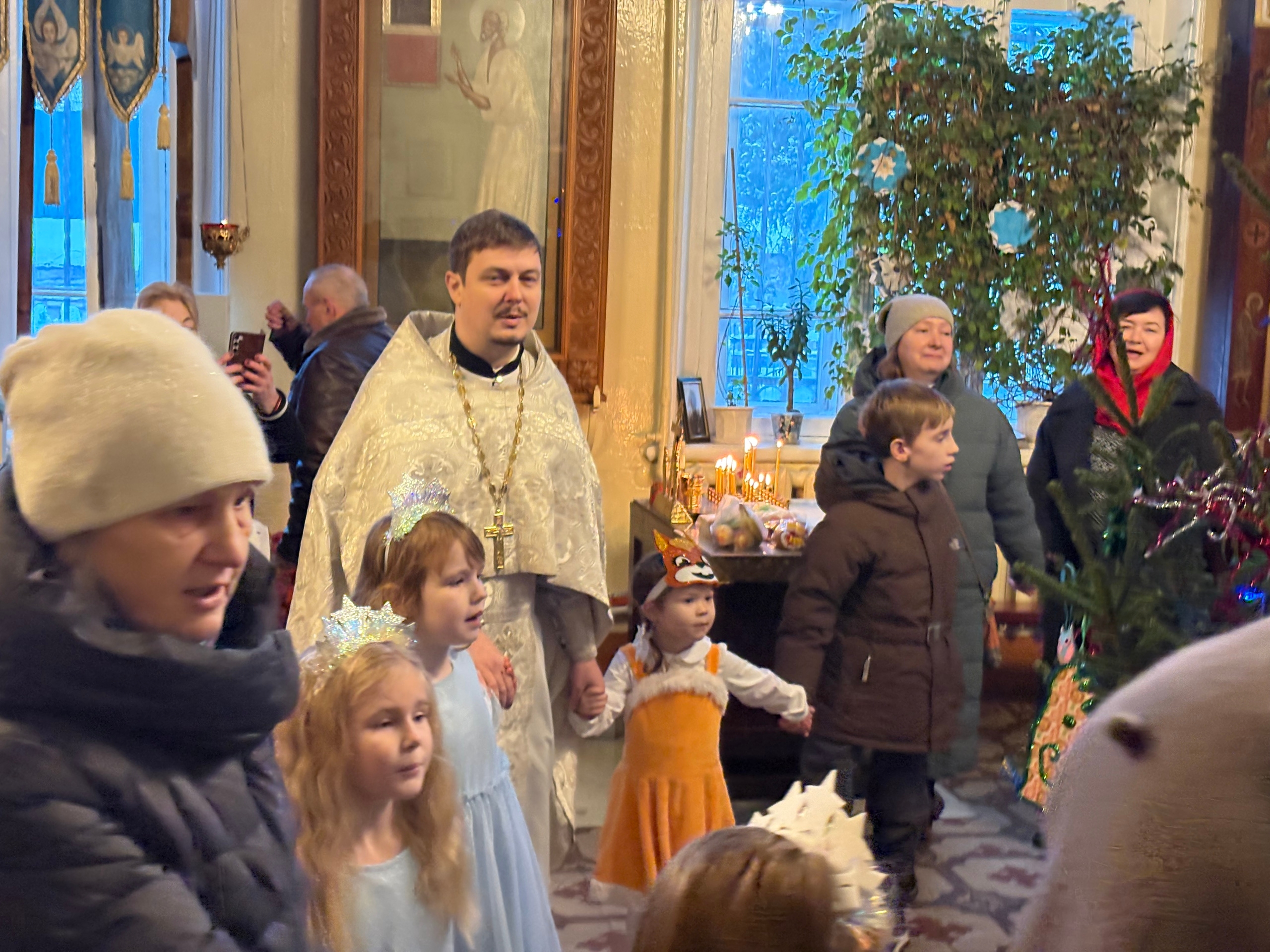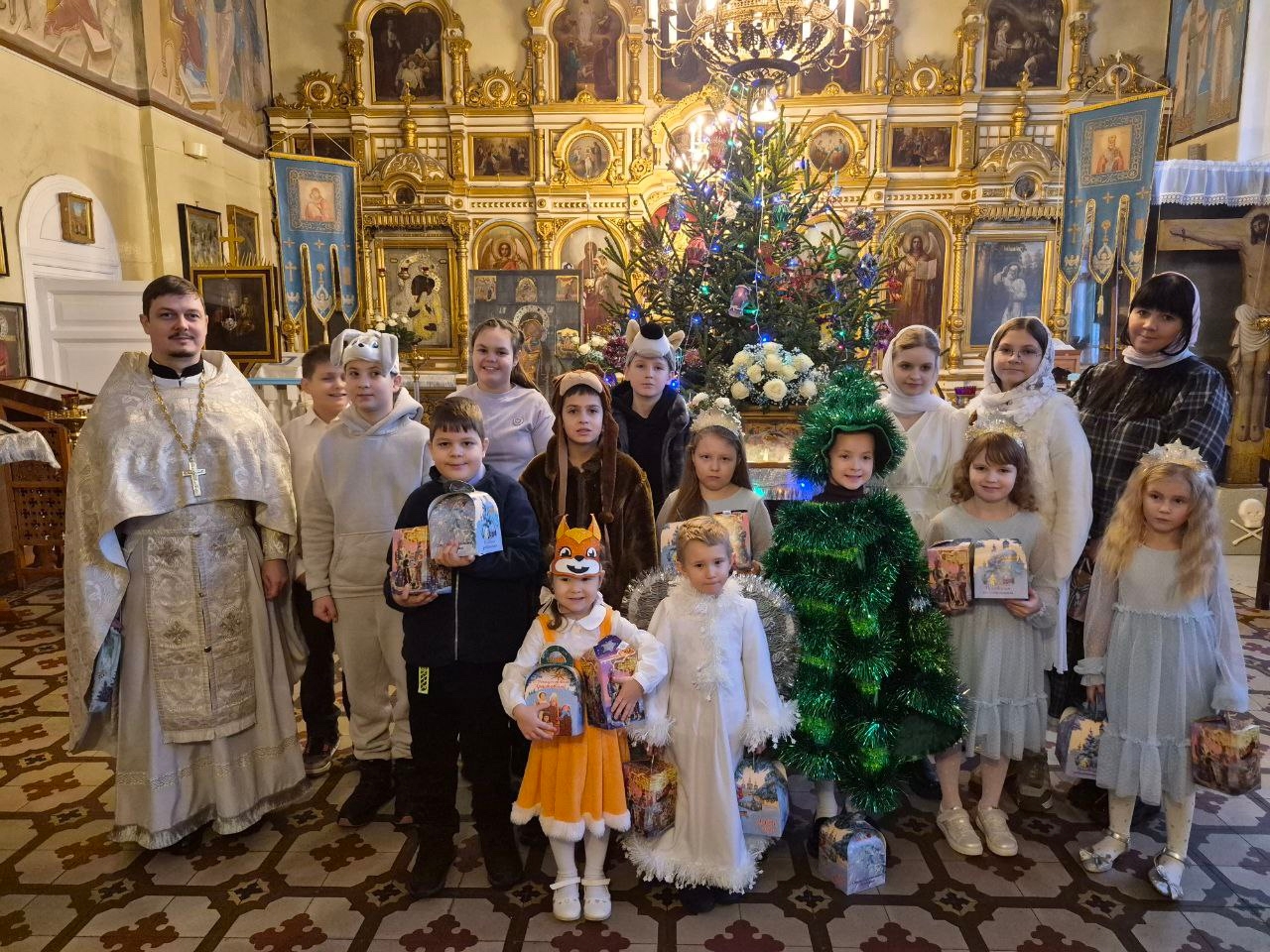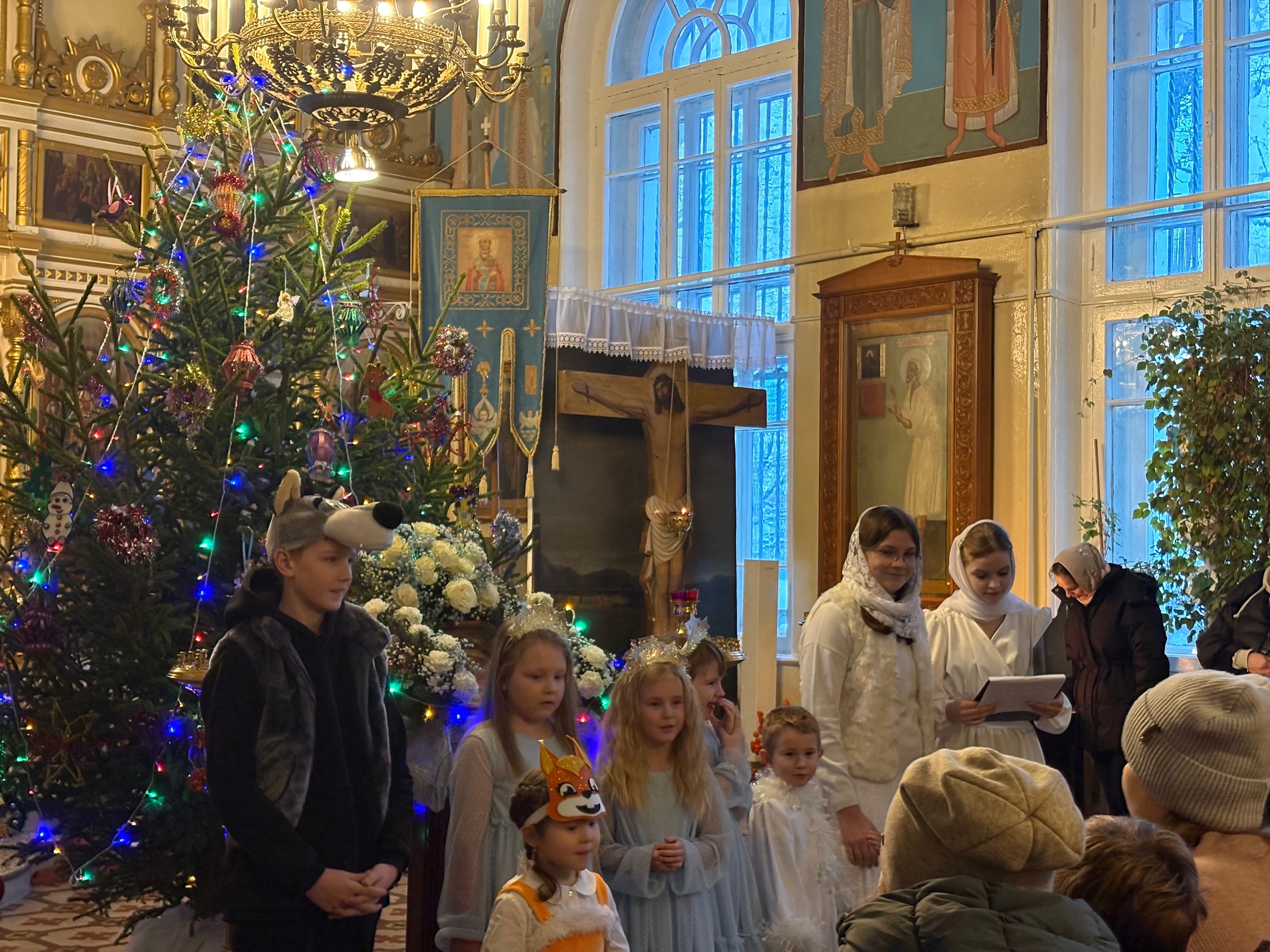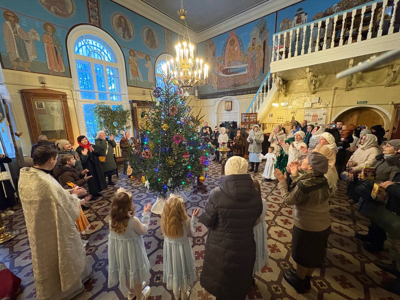 Праздничная программа началась с традиционных Рождественских колядок «Рождество Христово» и «Небо и земля», которые исполнили воспитанники Воскресной школы под руководством регента Татьяны Поповой. Затем дети представили для прихожан и гостей храма спектакль «Рождественская ёлочка».