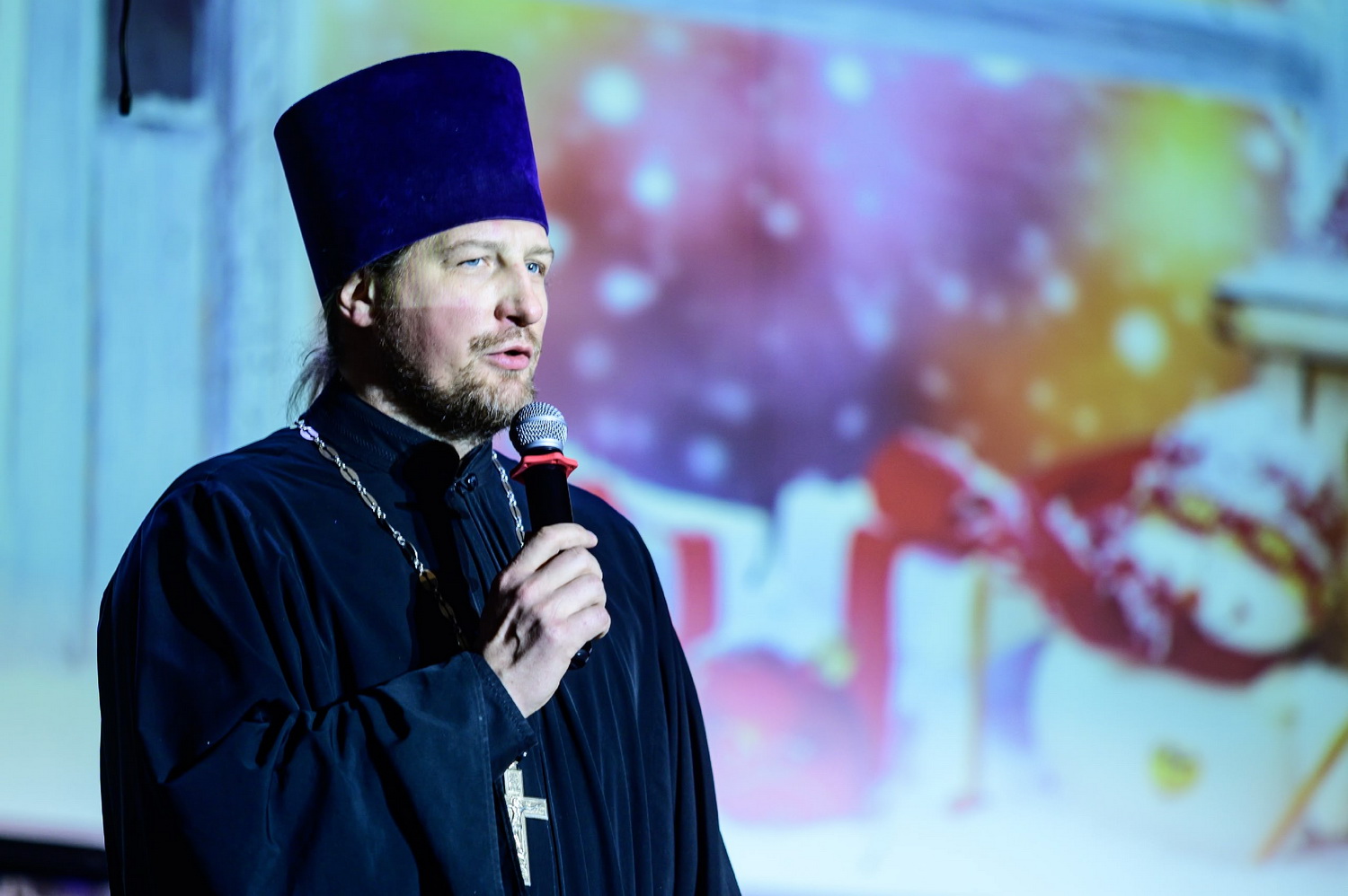 Святочный вечер начался с исполнения Рождественского тропаря и приветствия духовника Дружины Довмонта иерея Димитрия Головнева. Отец Димитрий поздравил собравшихся с Рождеством Христовым и Новым годом, передал благословение митрополита Псковского и Порховского Матфея, игумена Свято-Успенского Псково-Печерского монастыря, и вручил детям сладкие подарки от Владыки.