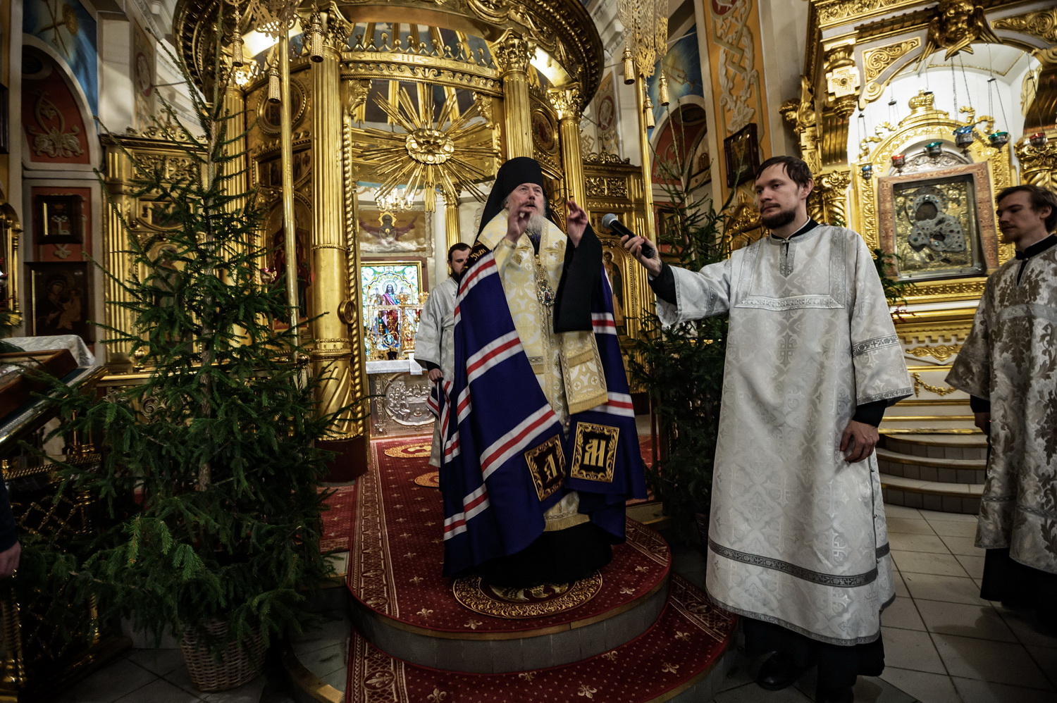 Его Высокопреосвященству сослужили: епископ Бикинский Пантелеимон, викарий Хабаровской епархии, архимандрит Филарет (Кольцов) с братией и гости праздника в священном сане.