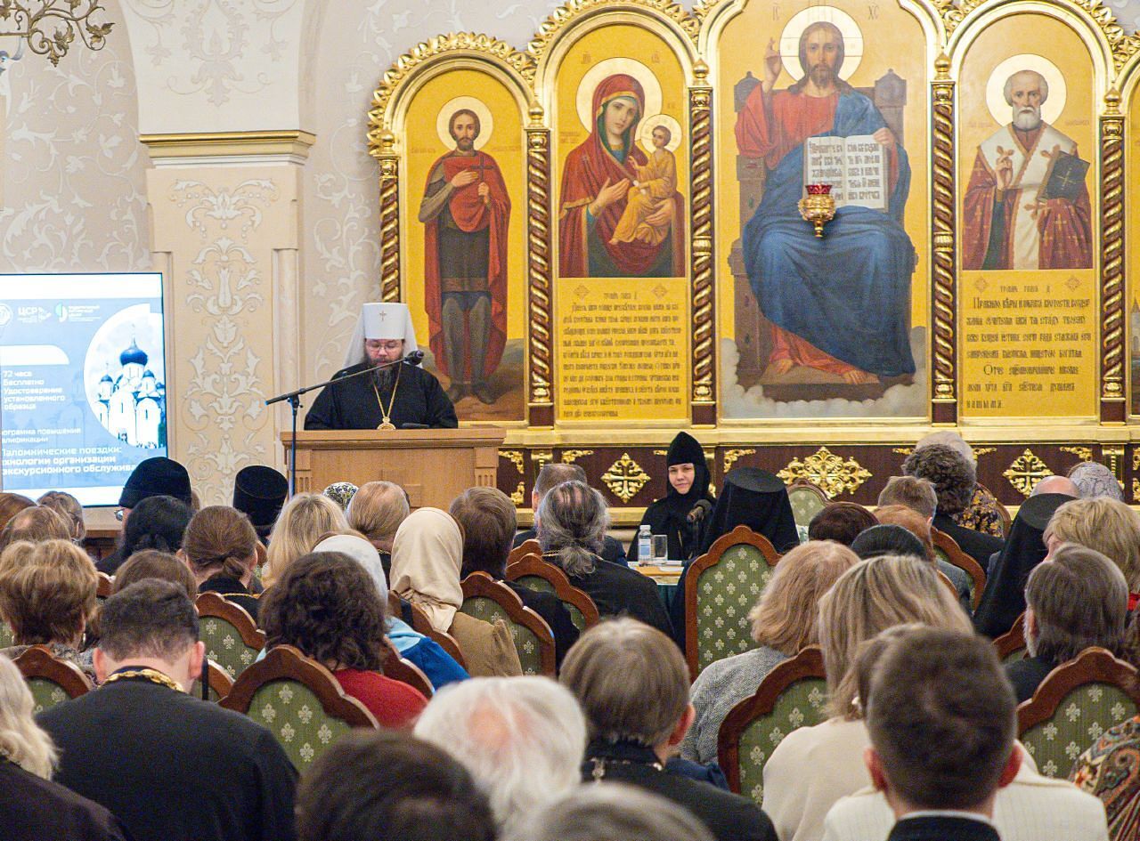 В рамках пленарной сессии «Паломничество в современном мире» были рассмотрены актуальные вопросы развития паломничества, взаимодействия Церкви и государства, а также региональный и международный опыт организации паломничества. Миссионерская роль паломничества, особенно для молодежи, также обсуждалась. Модераторами пленарной сессии выступили: игумения Михаила (Солодухина), настоятельница Покровского Александро-Чагринского женского монастыря Кинельской епархии, руководитель направления работы Комиссии «Развитие паломничества», которая доложила об итогах работы Комиссии по направлению развития паломничества в 2025 году; и Нана Маргушевна Гвичия, заместитель председателя Комитета по развитию туризма Санкт-Петербурга, которая сообщила об опыте выстраивания взаимодействия Церкви и власти для развития паломничества и культурно-познавательного туризма.