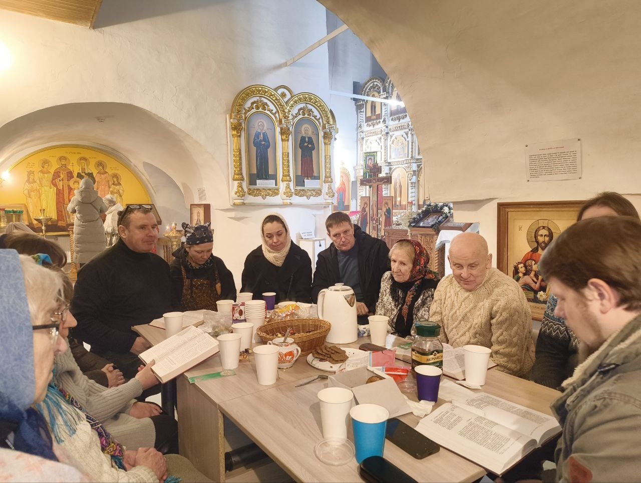 25 января 2026 года при храме святых первоверховных апостолов Петра и Павла (с Буя) города Пскова состоялось очередное занятие для взрослых по изучению Священного Писания.
