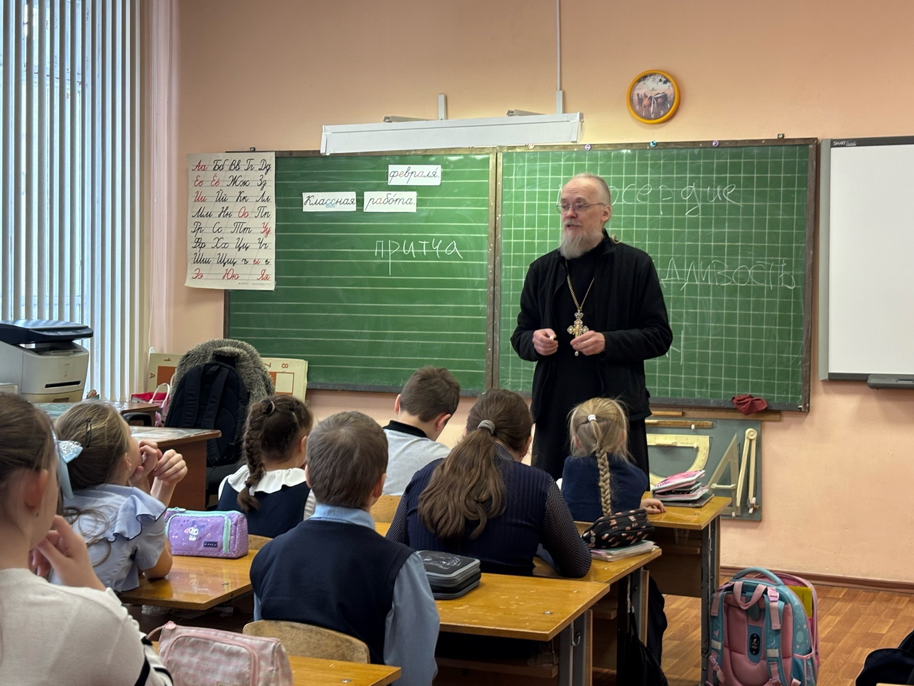 19 февраля 2026 года клирик Свято-Троицкого кафедрального собора города Пскова и куратор соборной Воскресной школы «Радость» протоиерей Артемий Лутченко провел с третьеклассниками МБОУ «СОШ № 9 им. А.С. Пушкина» города Пскова встречу, посвященную теме: «о прощении, которое идет от сердца».