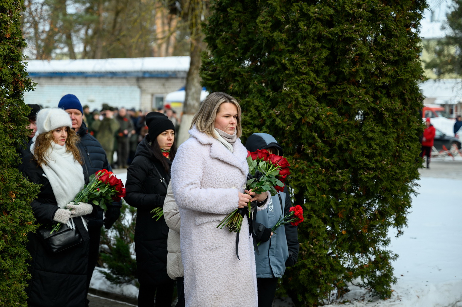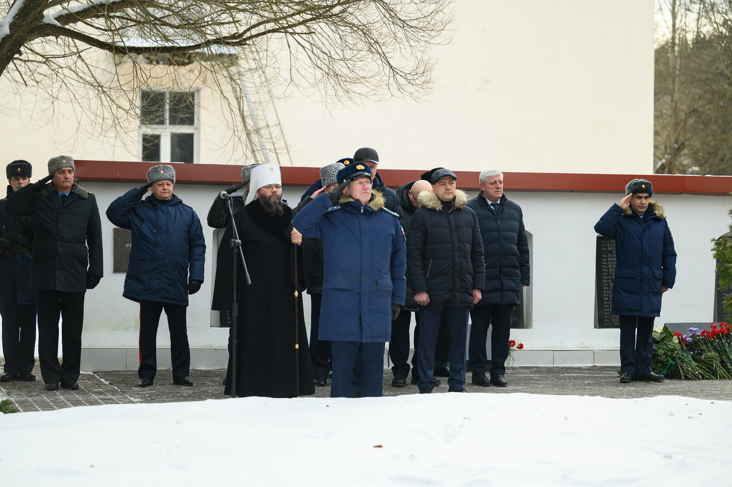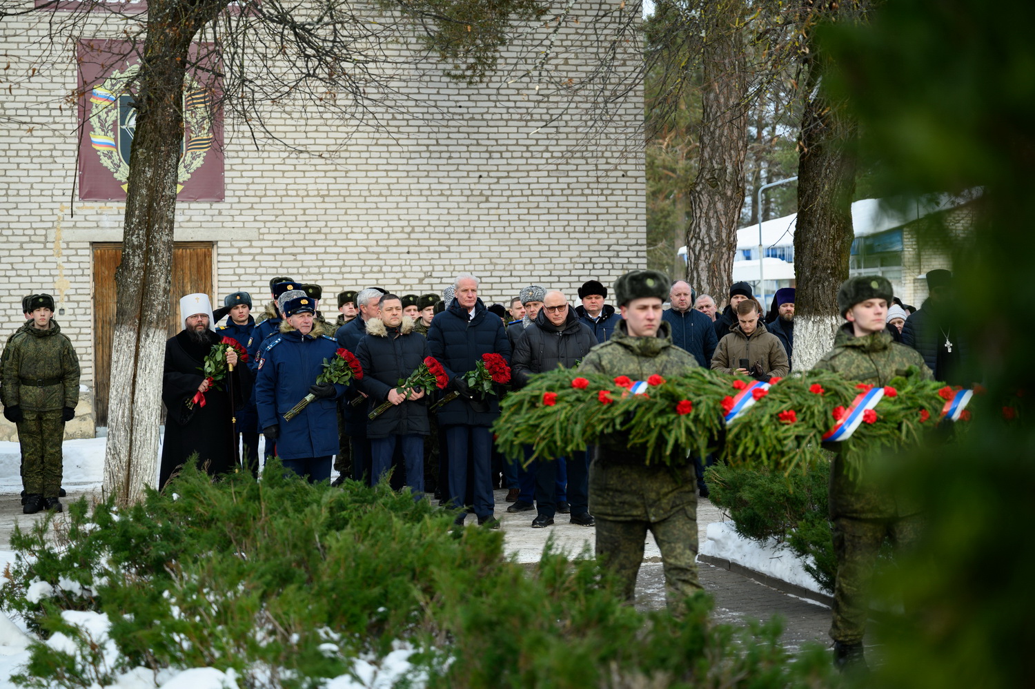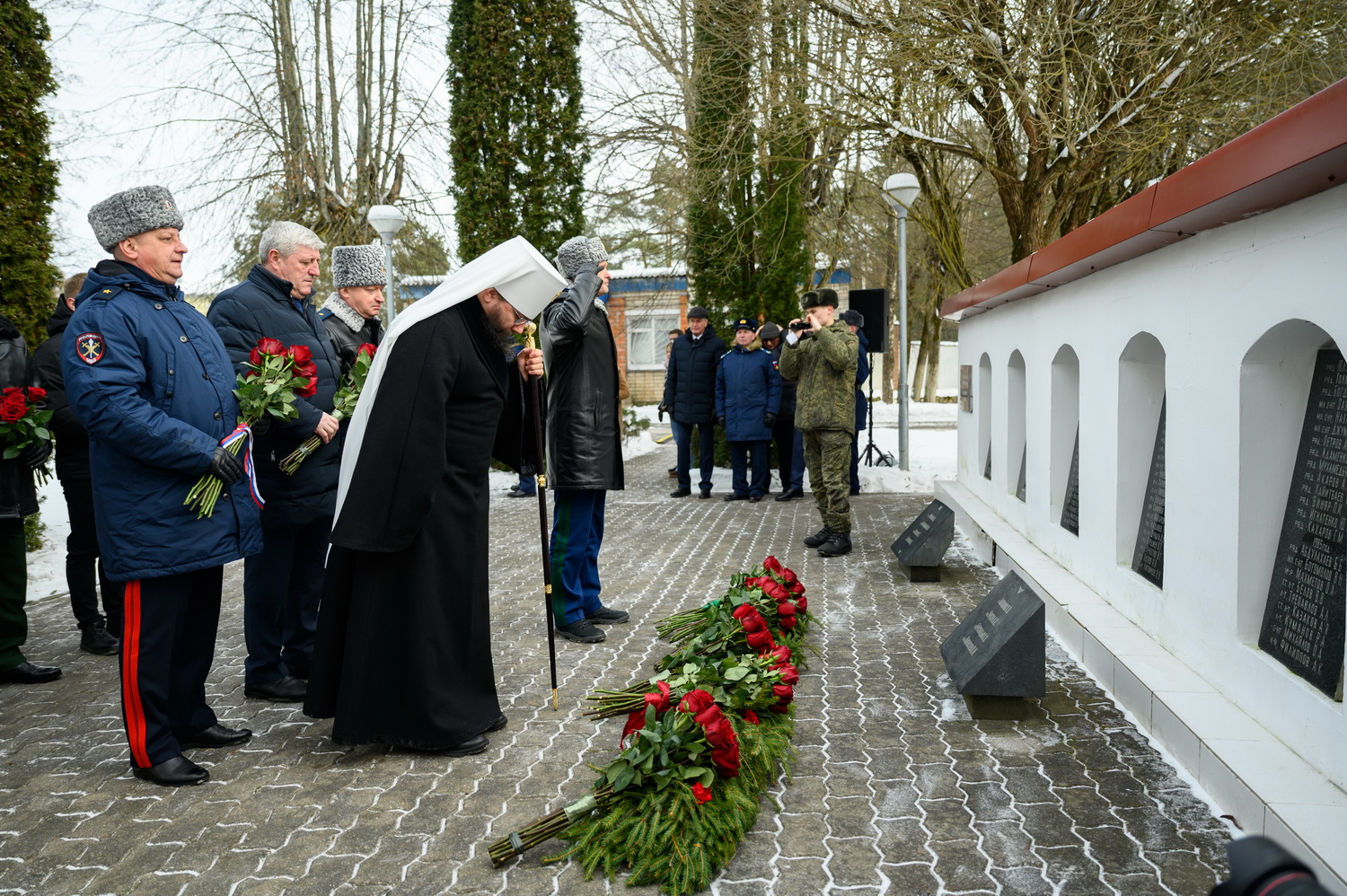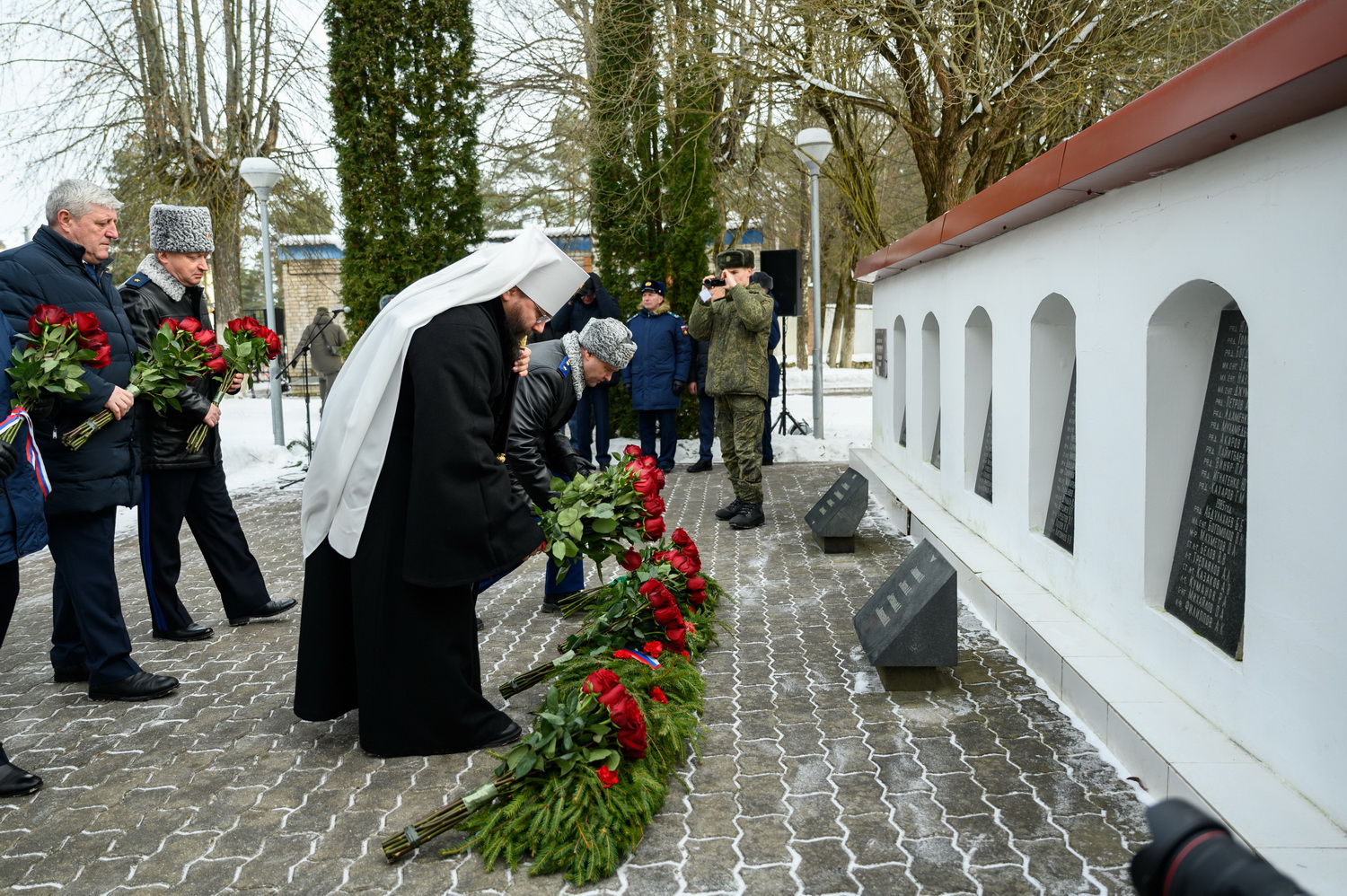 За богослужением молились: Губернатор Псковской области Михаил Ведерников, советник Генерального прокурора РФ Михаил Матвиенко, председатель Псковского областного Собрания депутатов Александр Котов и руководство Псковского территориального гарнизона, военнослужащие, представители силовых структур, родственники погибших Героев.