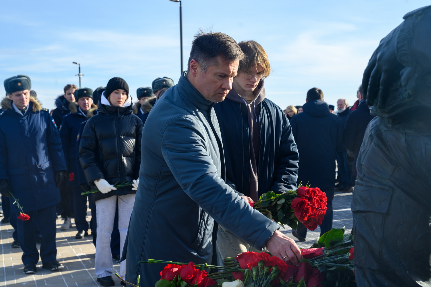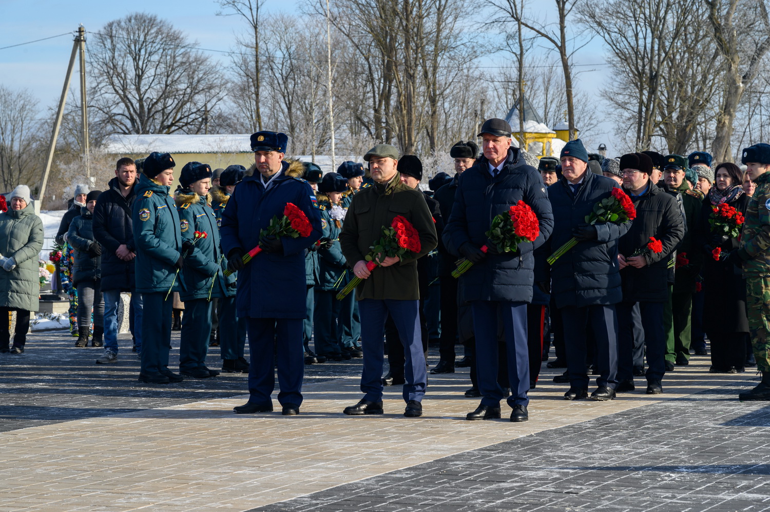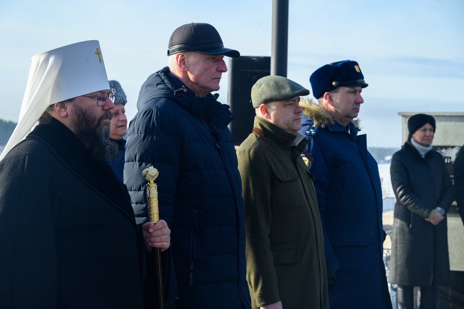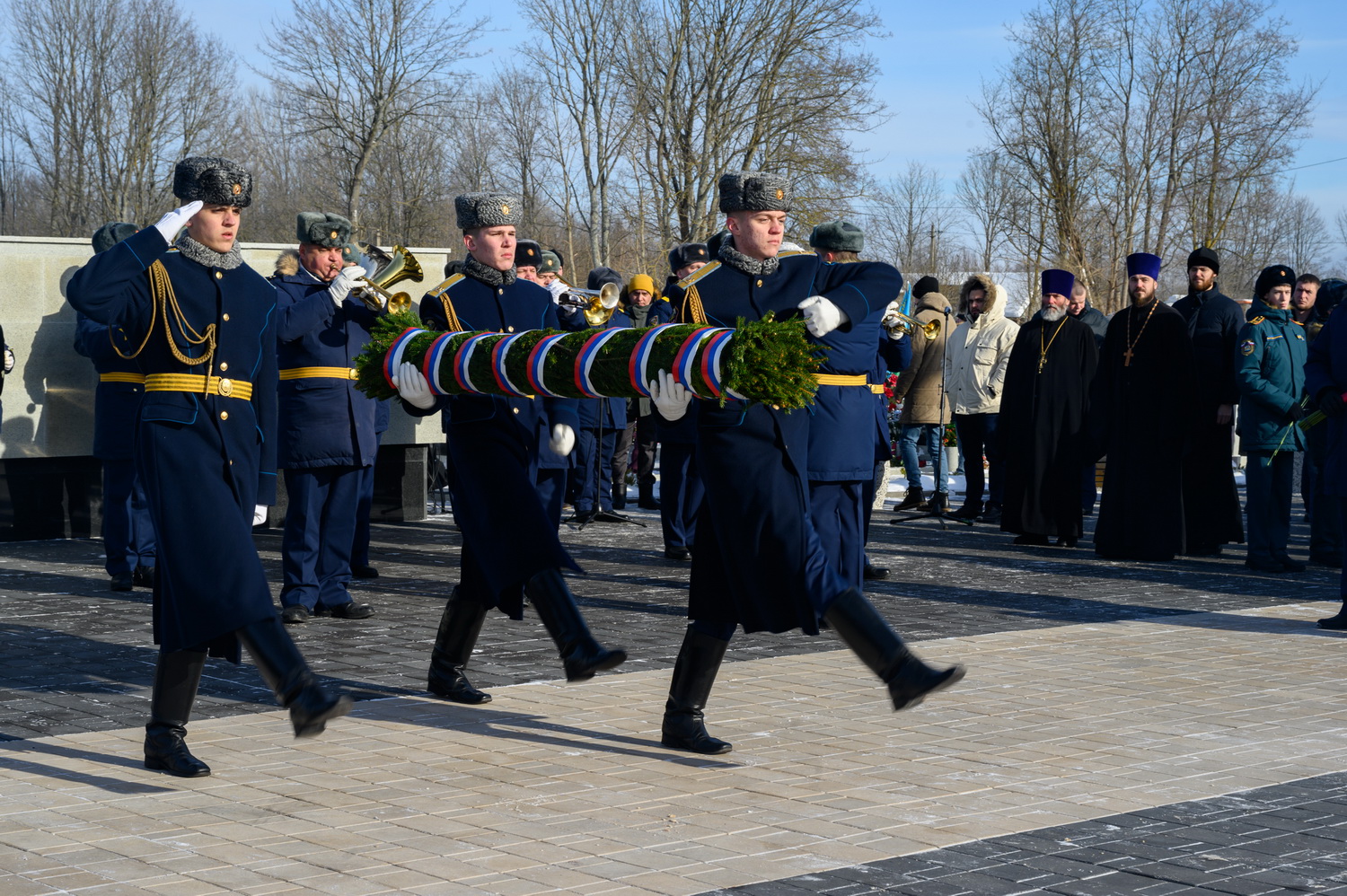 Затем состоялась торжественная церемония возложения гирлянды воинской славы и цветов к мемориальному комплексу в память о защитниках Отечества.