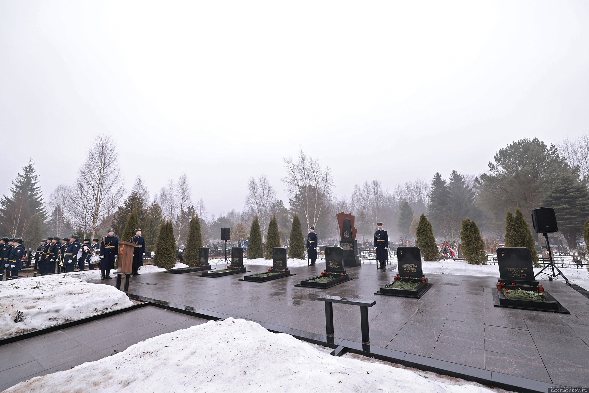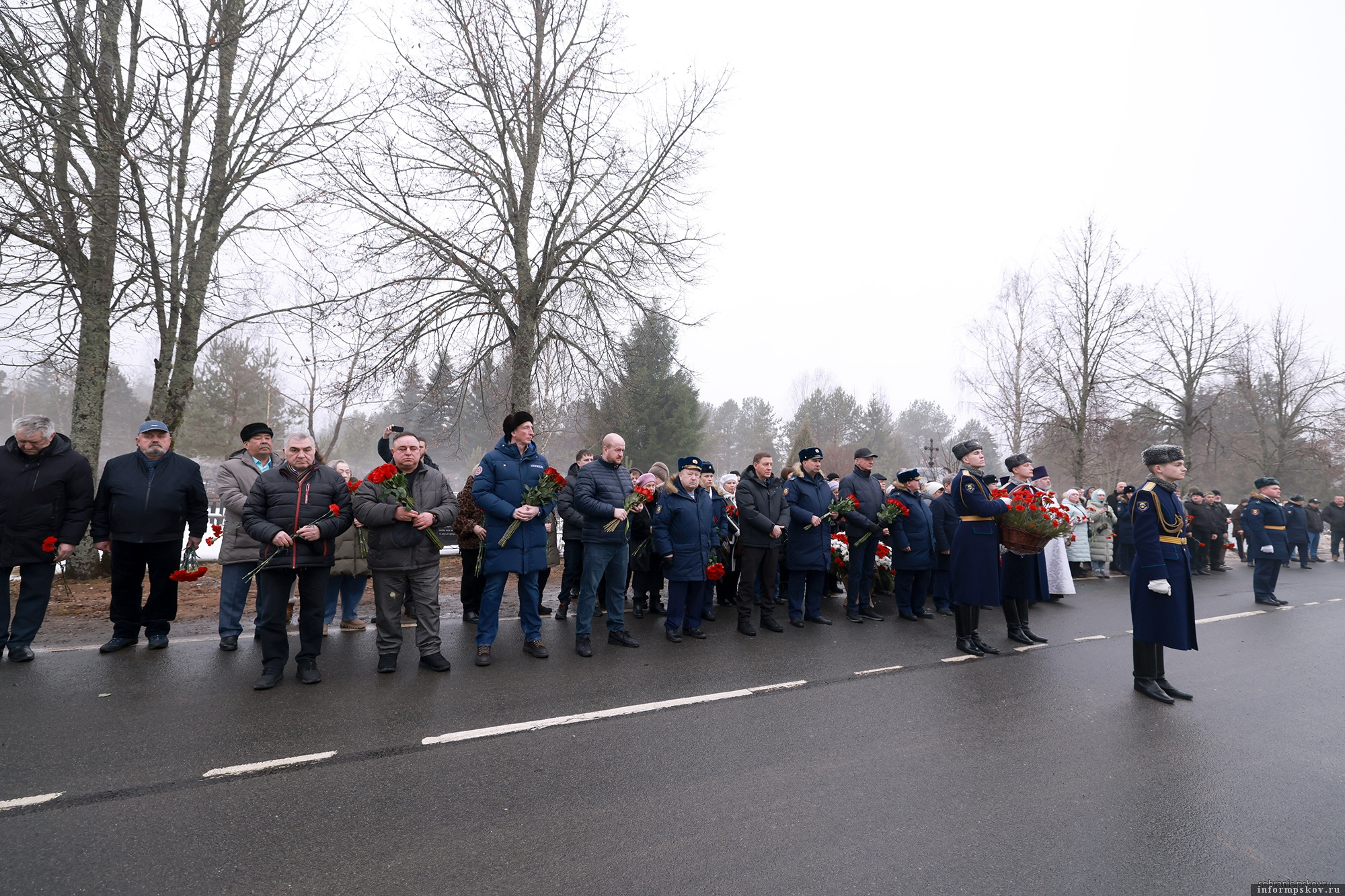 За богослужением молились: Губернатор Республики Алтай, председатель попечительского совета фонда «Памяти 6-й роты» Андрей Турчак; председатель Псковского областного Собрания депутатов Александр Котов; глава города Пскова Борис Елкин; депутат Госдумы, секретарь Псковского регионального отделения «Единой России» Александр Козловский, родные и близкие героев-десантников.